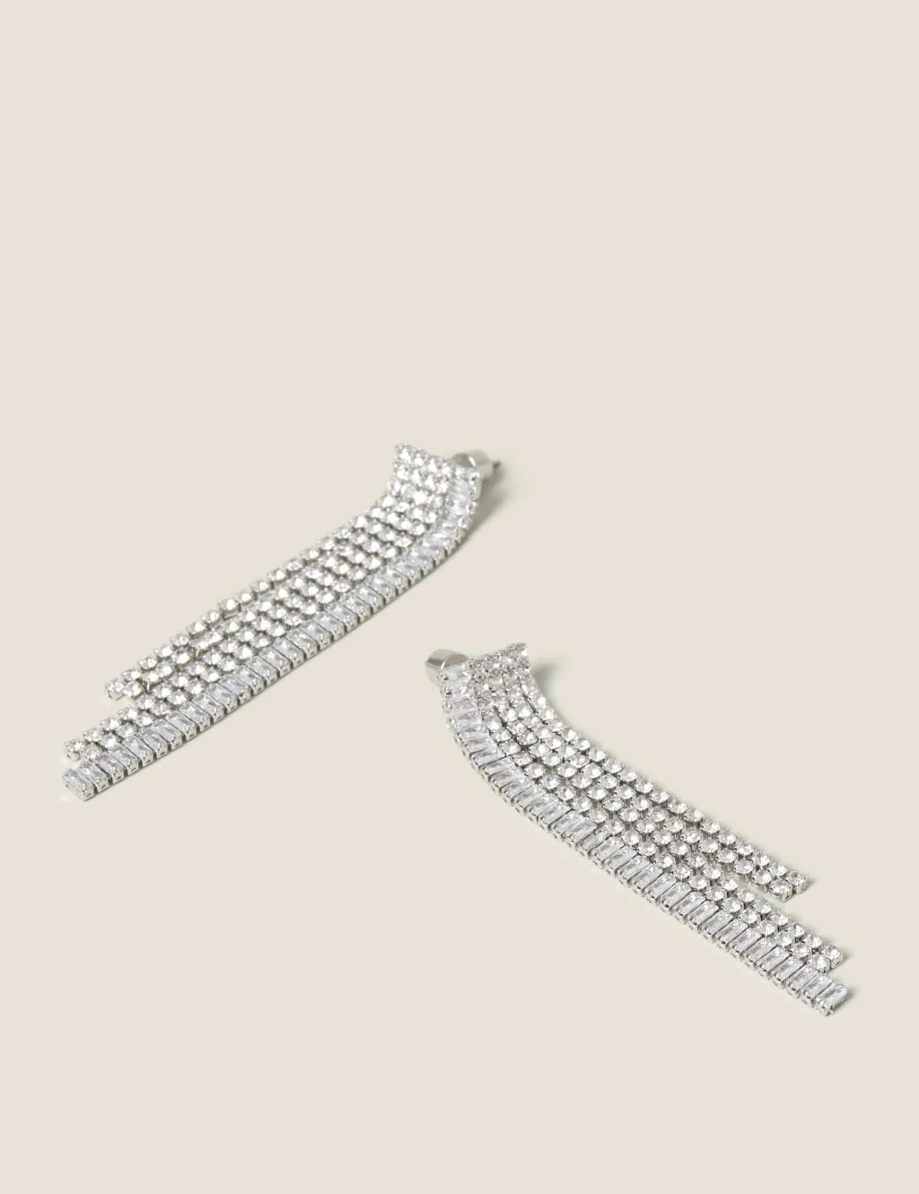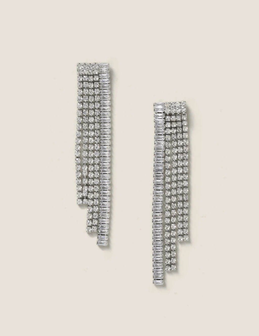 These rhinestone drop earrings are the perfect statement piece to any occasion outfit.