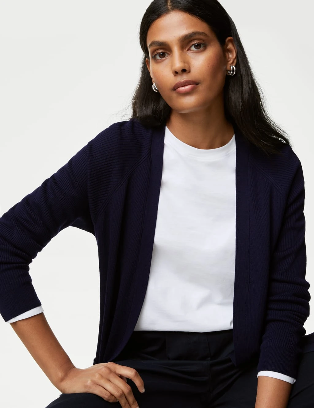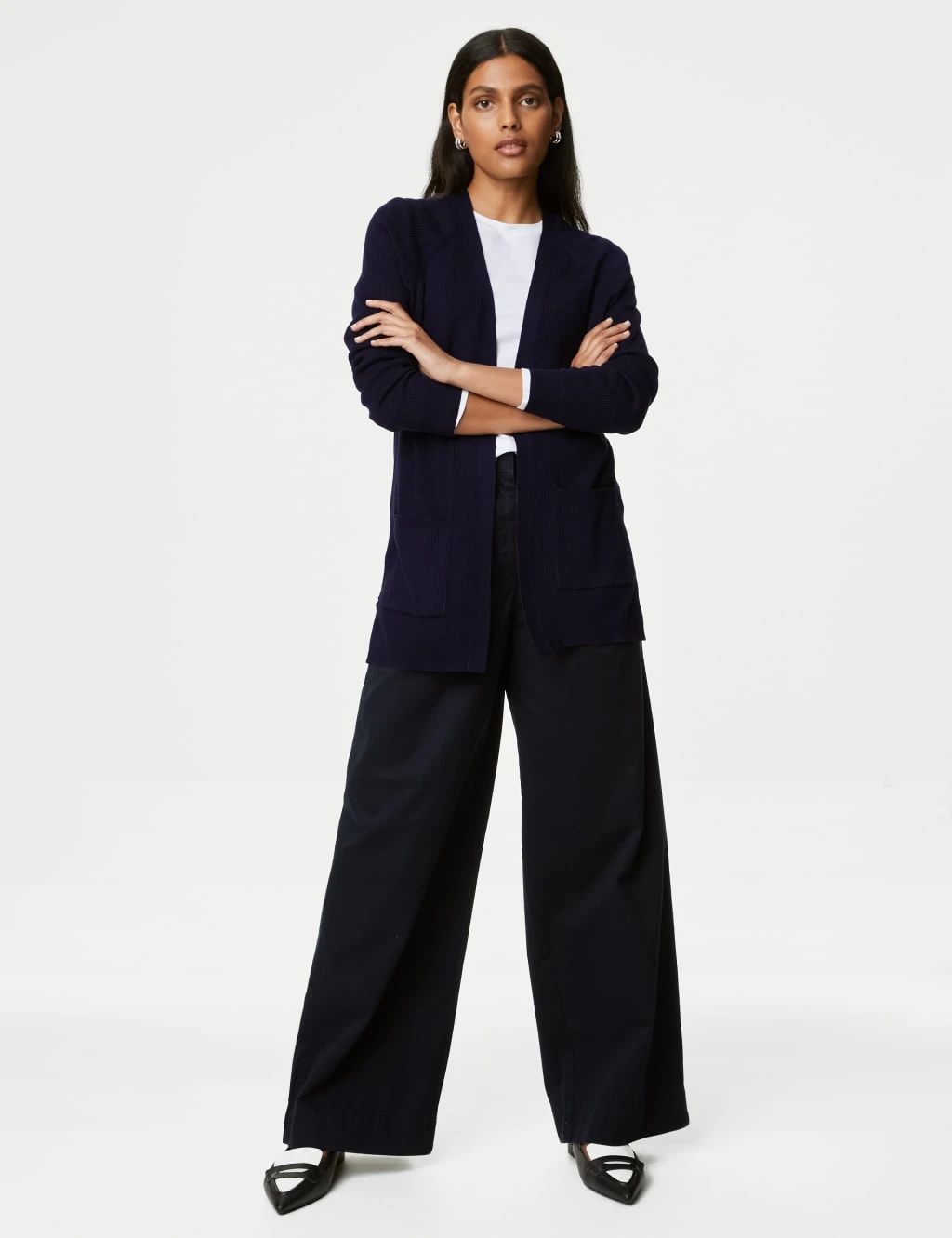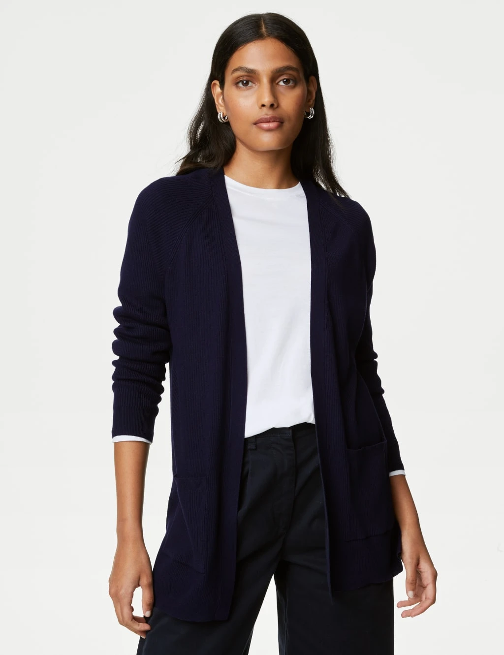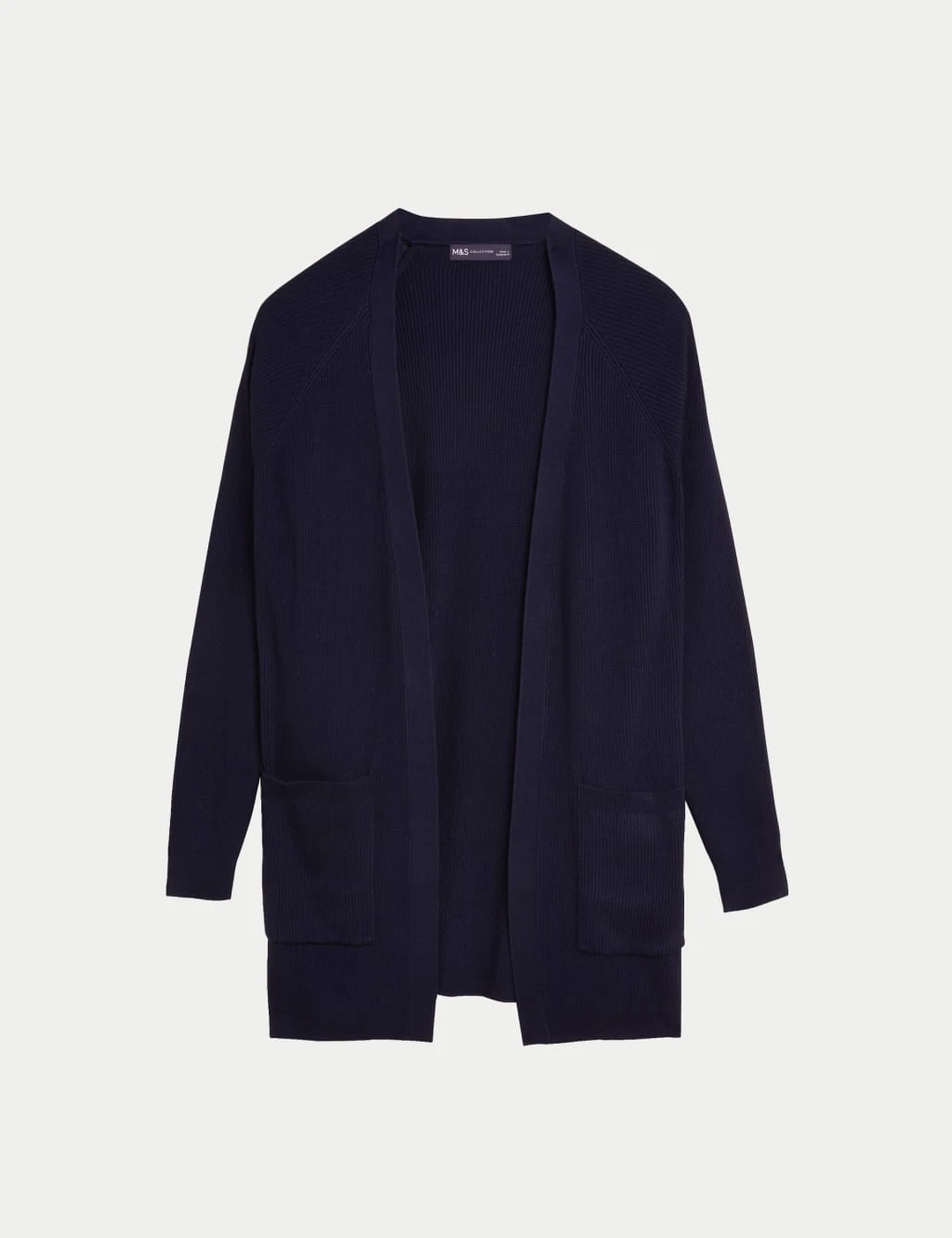 When the temperature drops, reach for this edge to edge cardigan. It has a regular fit, with a longline hem for an elegant look. All-over ribbing gives it a cosy feel and patch pockets are ideal for warming your hands. Made with sustainably sourced viscose.