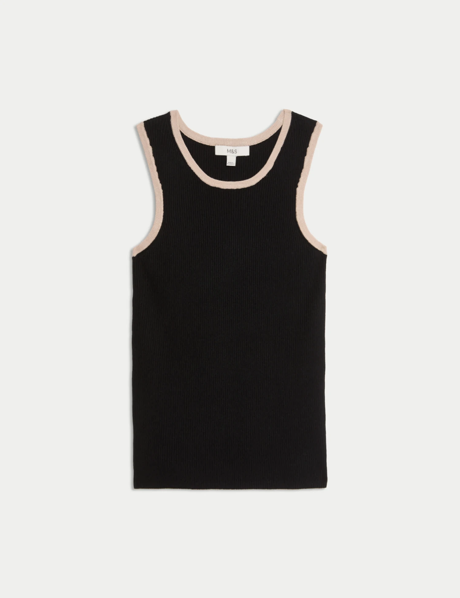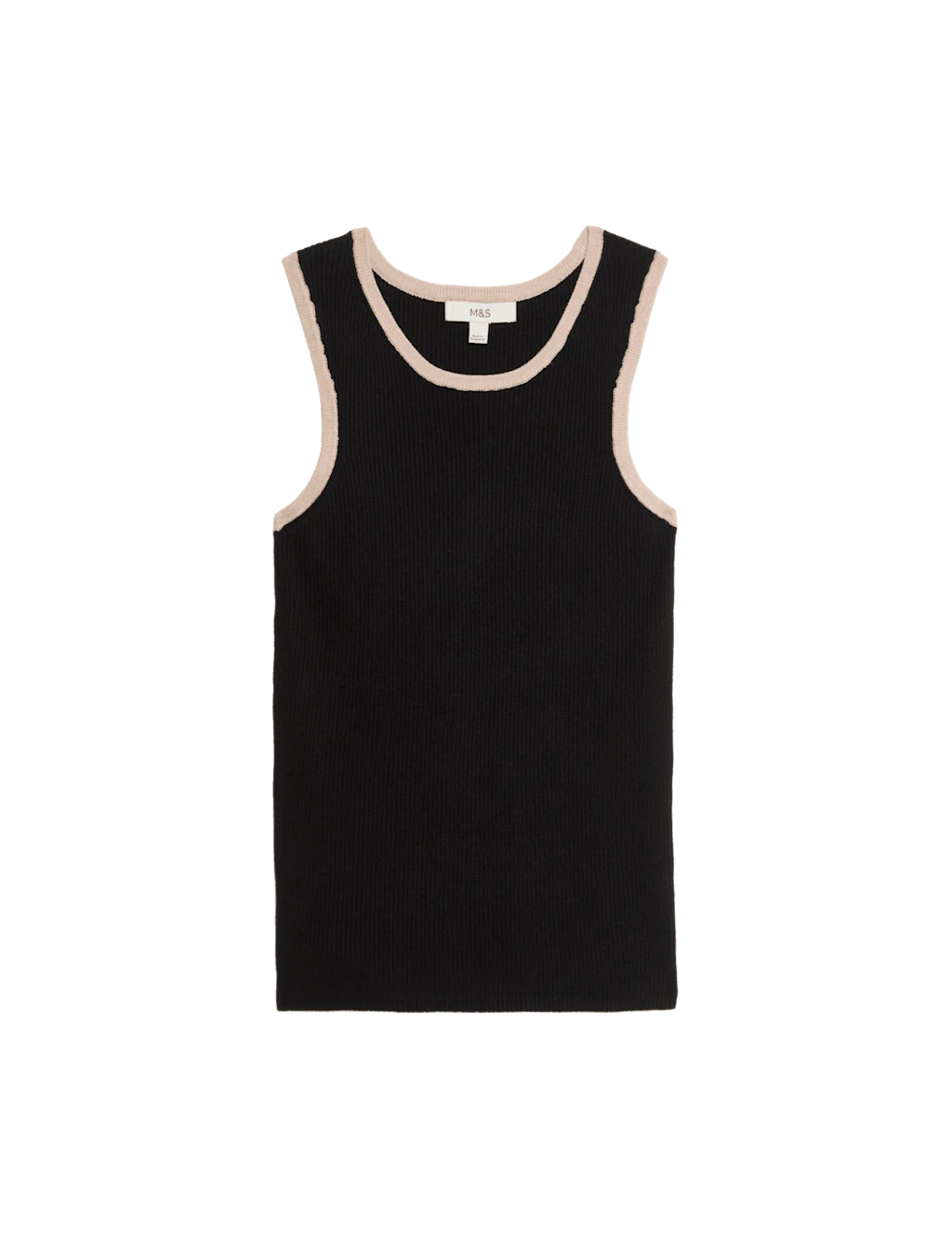 This knitted vest is a versatile addition to your smart-casual wardrobe. It’s designed in a figure-defining fitted shape, with a sporty racer-style back and a timeless crew neckline. The ribbed knit gives a textured feel, while contrast tipping on the neck and arms adds a preppy finish. M&S Collection: easy-to-wear wardrobe staples that combine classic and contemporary styles.