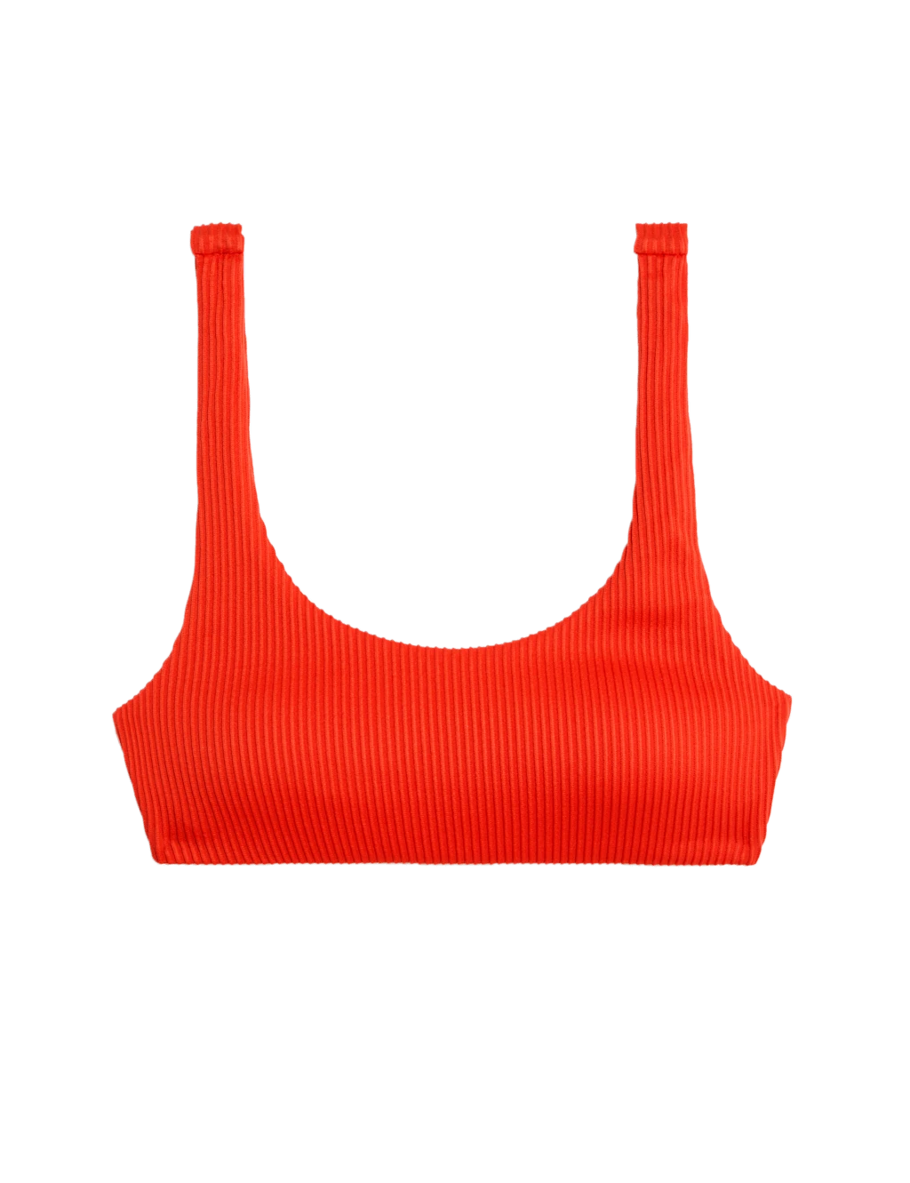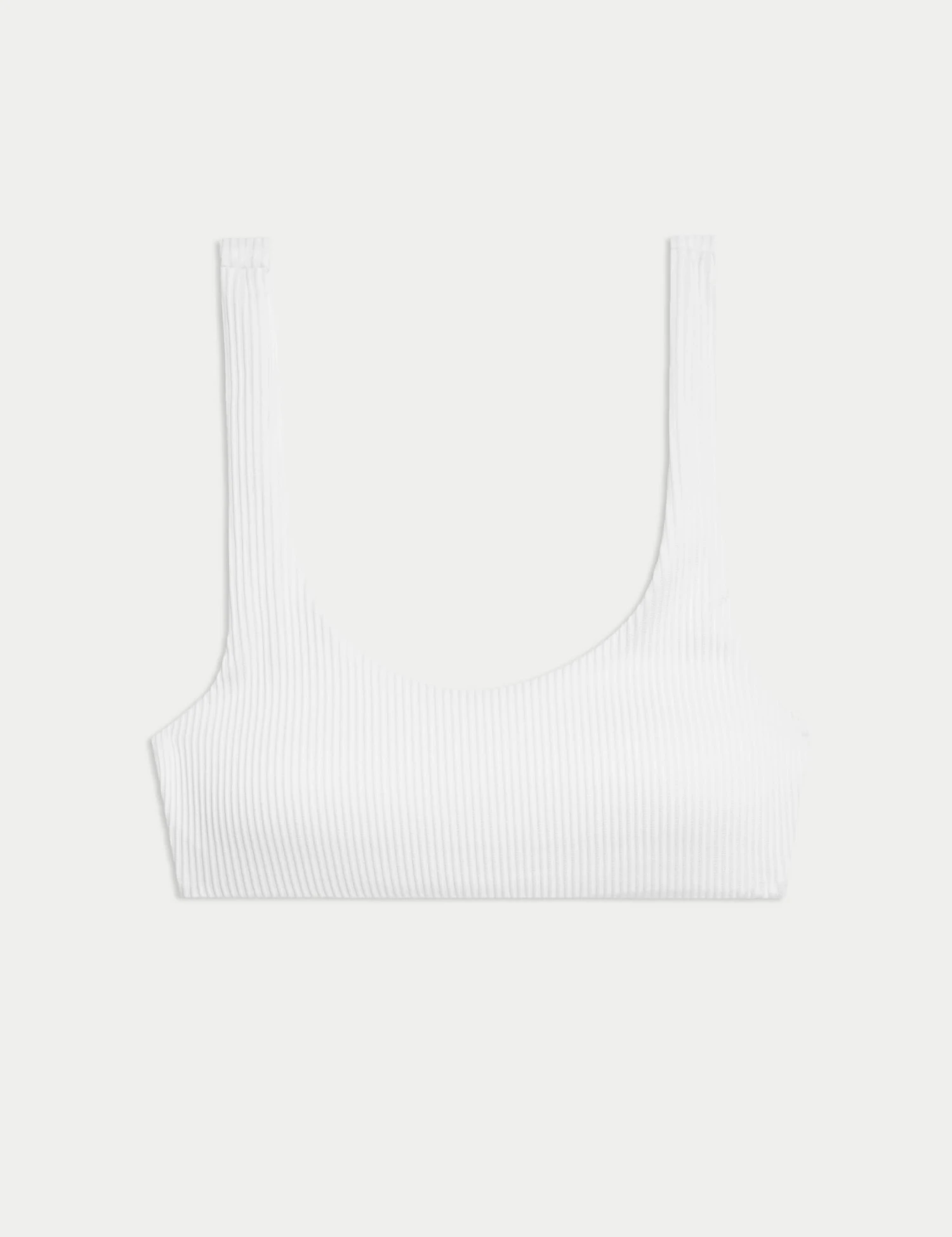 This ribbed bikini top is a stylish choice for days at the beach. It has a flattering scoop neckline and removable padding for versatility. Added stretch ensures a comfortable fit, while chlorine-resistant fabric keeps it looking newer for longer. M&S Collection: versatile styles in modern shapes with unique and playful details.