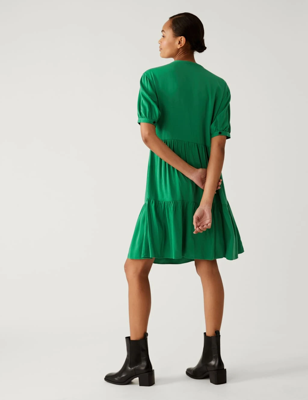 This knee-length shirt dress features a tiered skirt for a swishable feel. It’s designed in a comfy regular fit, with a round neckline and button fastenings down the front. The short sleeves are gathered into buttoned cuffs for a neat look.