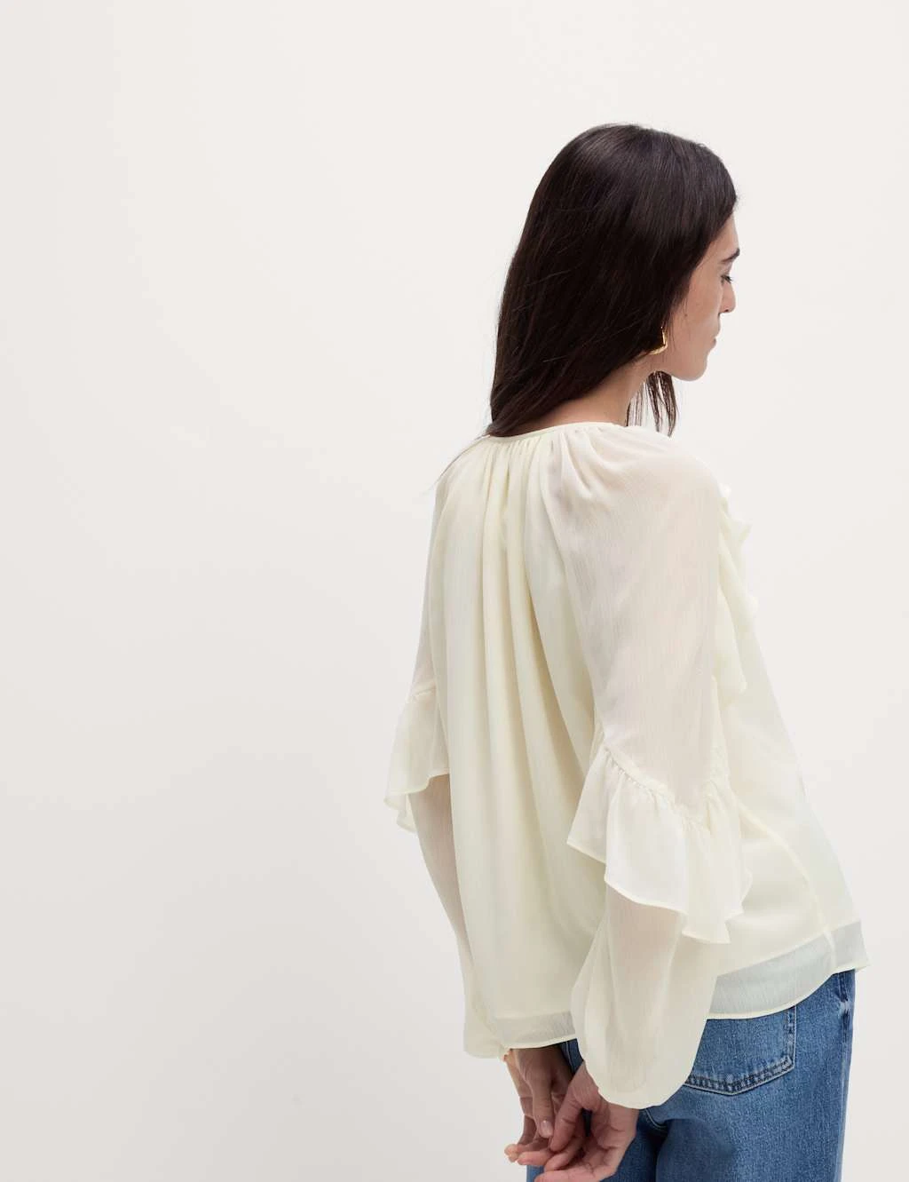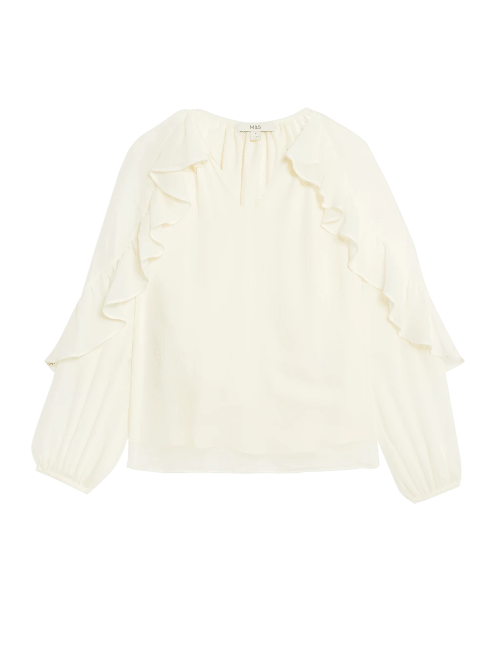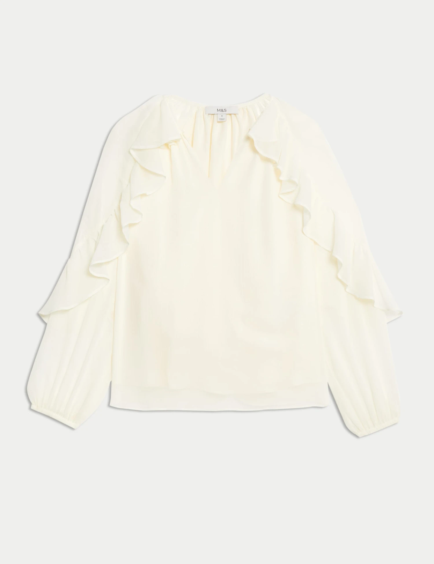 Add a touch of elegance to any occasion with this versatile blouse. Designed in a comfortable regular fit, it features a flattering v-neckline for added charm. Delicate ruffles on the long sleeves and front lend a romantic touch, perfect for elevating your look. M&S Collection: easy-to-wear wardrobe staples that combine classic and contemporary styles.