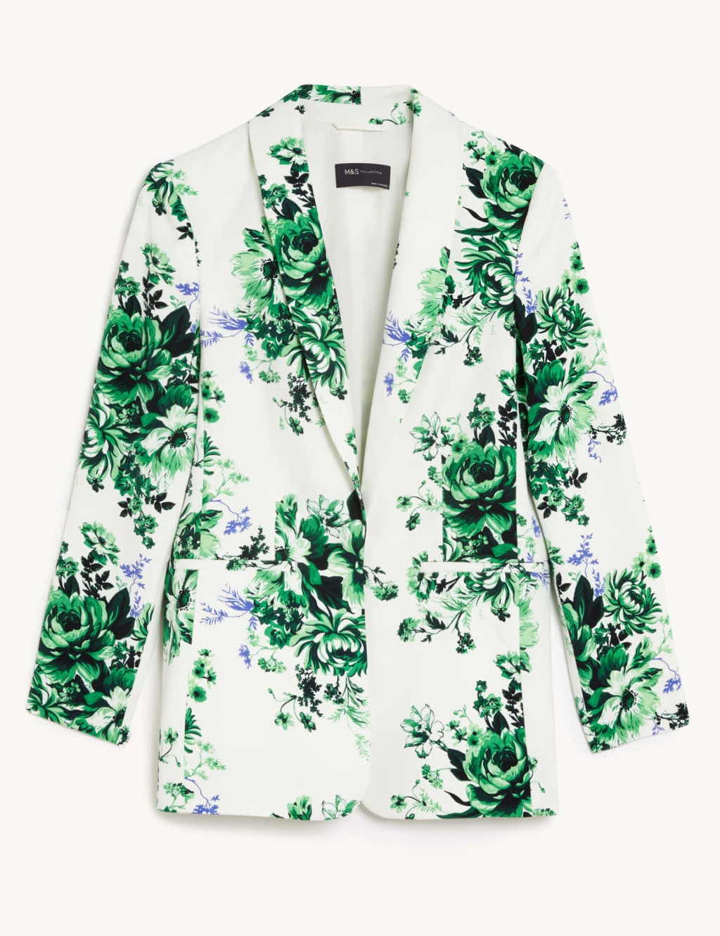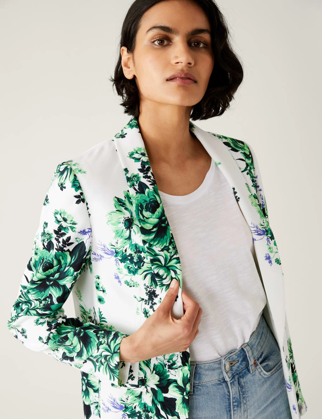 A bold floral print makes this satin-look twill blazer pop. It’s a classic edge-to-edge design, with a roomy relaxed fit and added stretch in the fabric for comfort. A neat shawl collar and two welt pockets on the front give a smart finish.