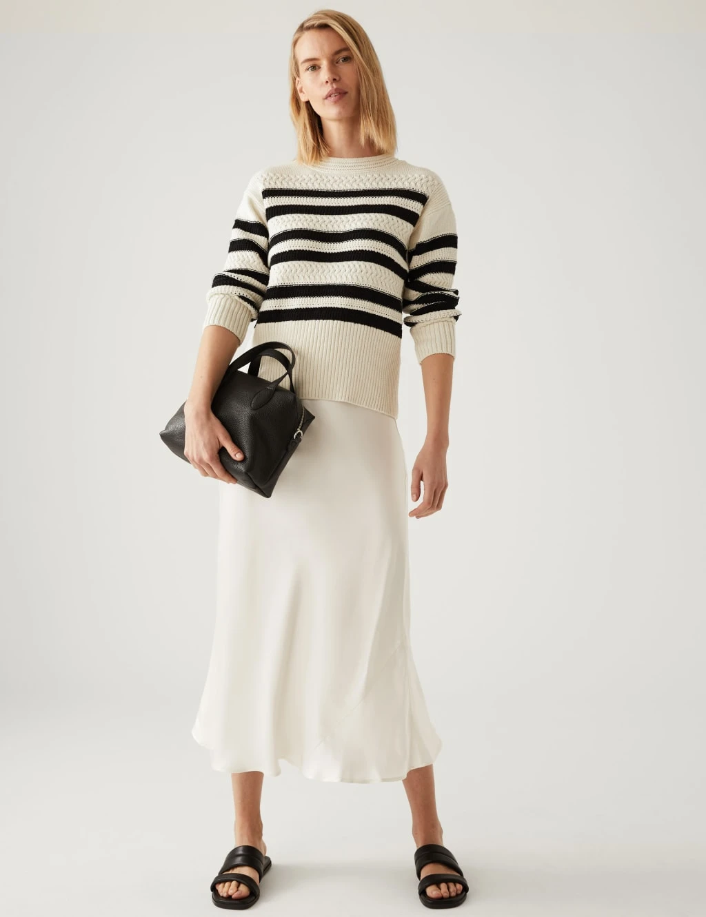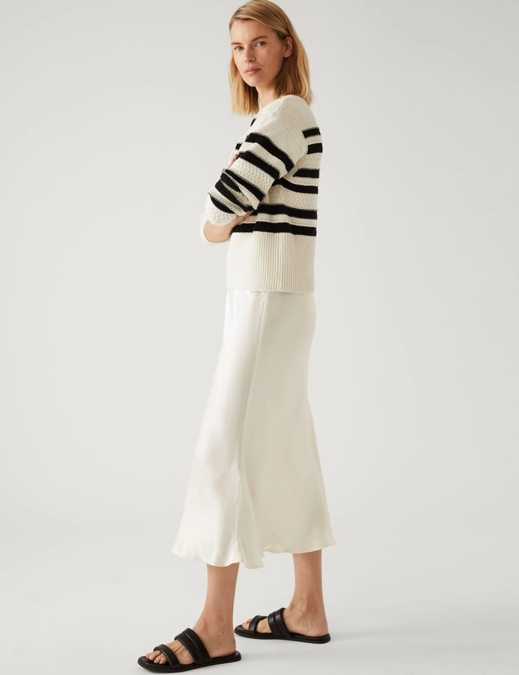 Pull off effortless elegance in this satin slip skirt. It’s designed with a high, elasticated waistband for a flattering effect. The breezy midaxi length adds to the feminine look.