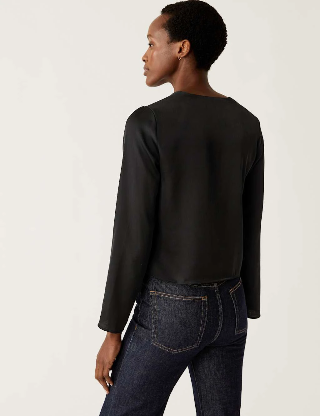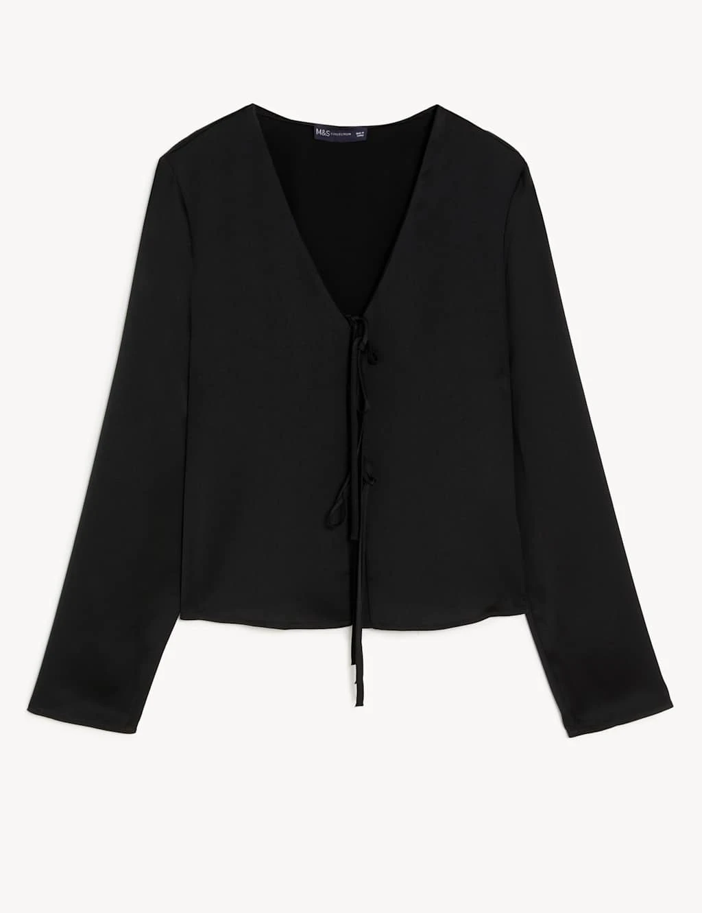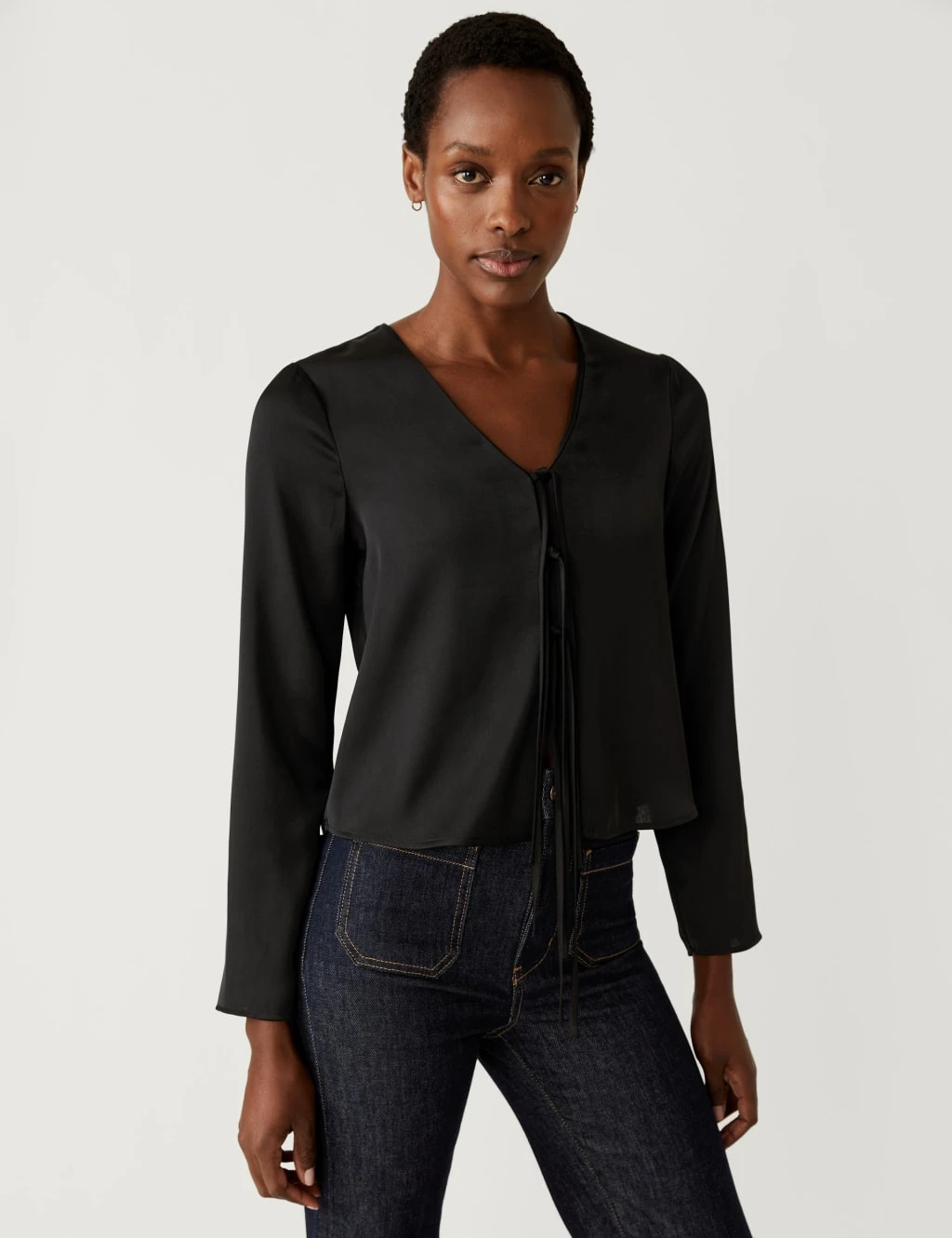 This versatile blouse is crafted from sleek satin for an effortlessly elegant look. It’s cut to a regular fit, with a flattering v-neckline and long drapey sleeves. The floaty design fastens with slim ties on the front.