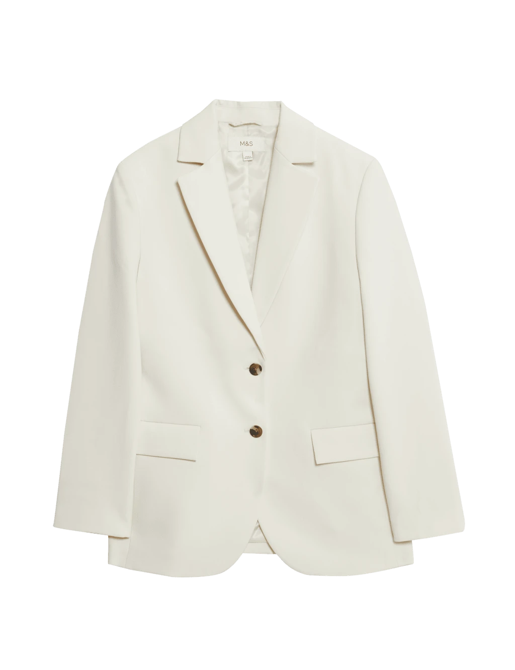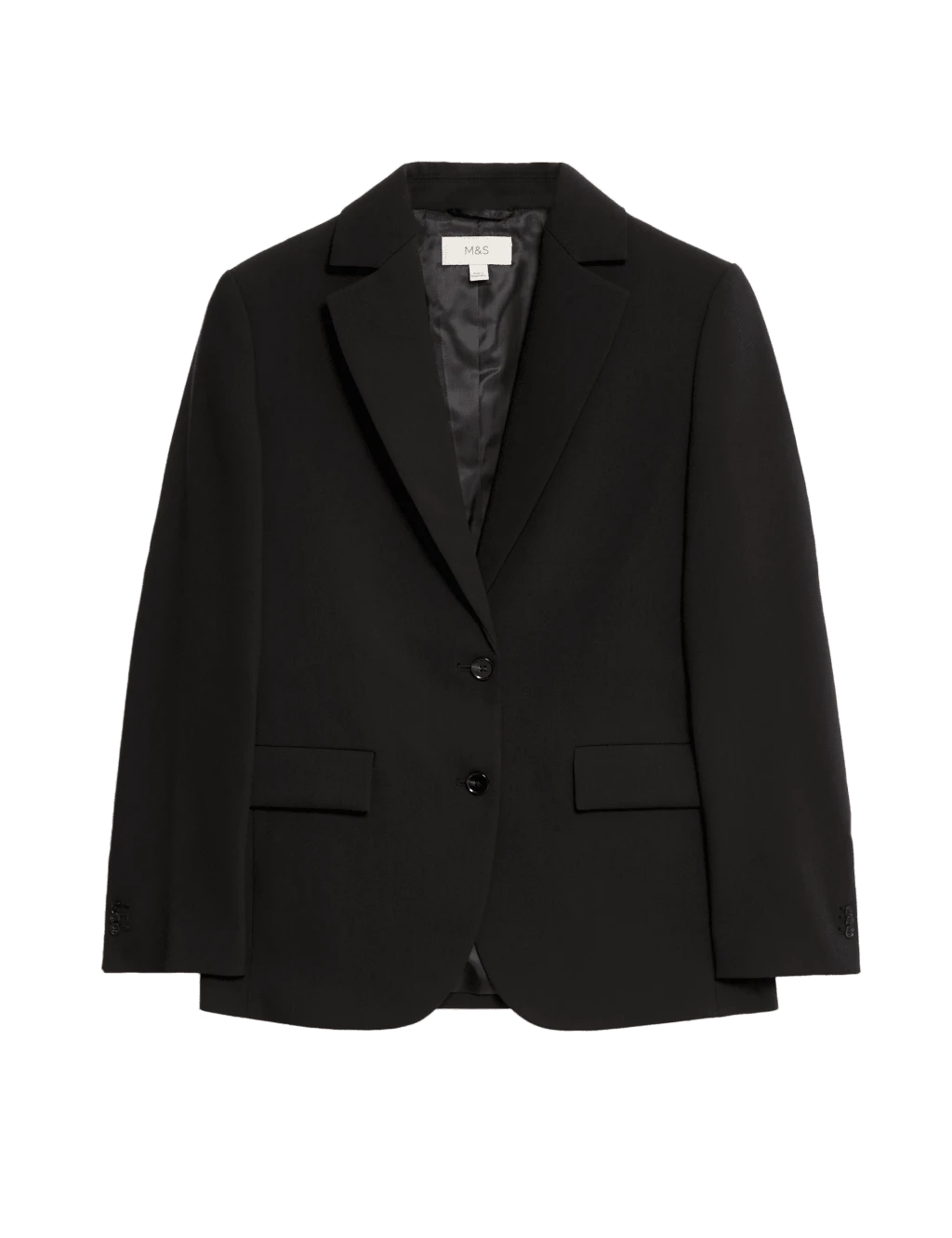 This single-breasted blazer is a versatile piece for work or weekend looks. It’s cut to a regular fit, with two tortoiseshell button fastenings, plus added stretch for comfortable wear. The design includes two front flap pockets and a chest pocket for your essentials, plus a back vent for easy movement. M&S Collection: easy-to-wear wardrobe staples that combine classic and contemporary styles.