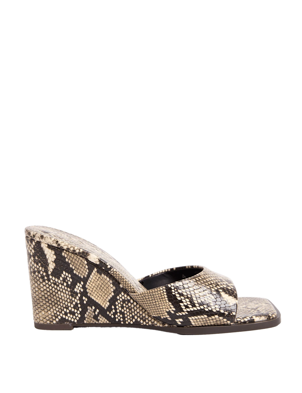 Slip on these snakeskin-print mules to make a directional style statement. They have a wedge heel to effortlessly elevate your look, combining with a square peep toe shape for a contemporary aesthetic. M&S Collection: easy-to-wear wardrobe staples that combine classic and contemporary styles.