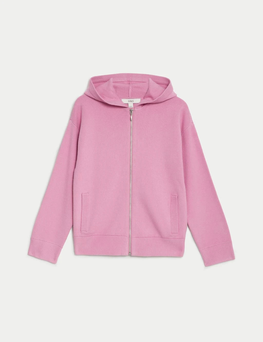 On cooler days, layer up in the supreme cosiness of this soft-touch knitted hoodie. It’s made in a slim fit, with an easy zip-through fastening. Two front slip pockets make space for your small essentials, while ribbed trims ensure a tidy finish. M&S Collection: easy-to-wear wardrobe staples that combine classic and contemporary styles.