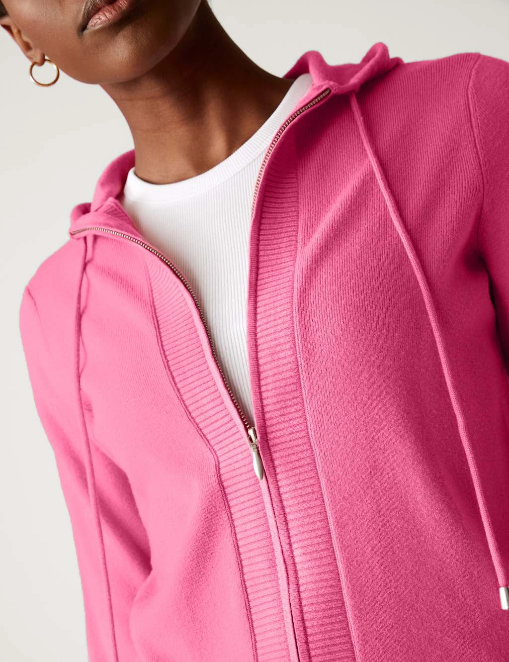 Stay snug in elegant style with this soft-touch hoodie. Designed in an easy relaxed fit, it features a zip fastening and adjustable drawstrings at the hood. Ribbed detail through the front adds extra style points to this timeless piece.