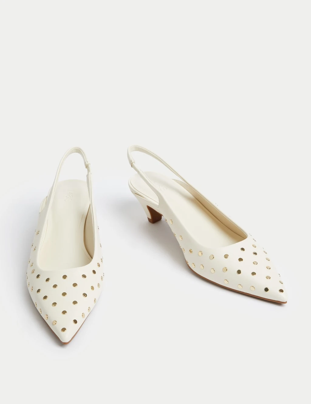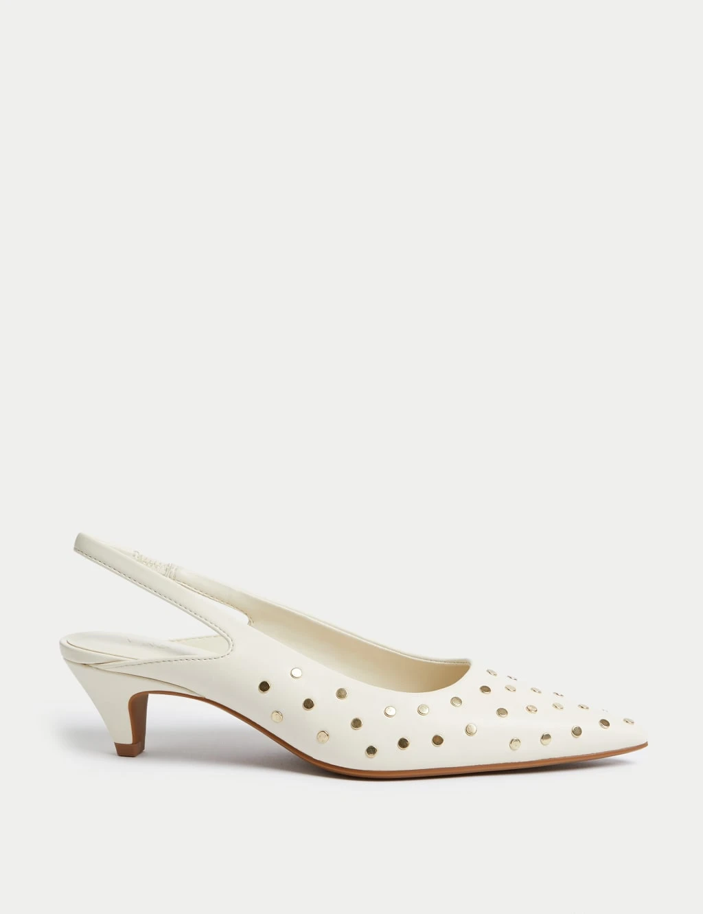 These slingback shoes are a sophisticated choice for parties and other special occasions. They have an elegant pointed toe and a mid-height kitten heel. Sparkly embellishments and a metallic finish give them a glamorous look. Insolia® technology redistributes weight from the balls of your feet to the heels for all-day comfort. M&S Collection: easy-to-wear wardrobe staples that combine classic and contemporary styles.