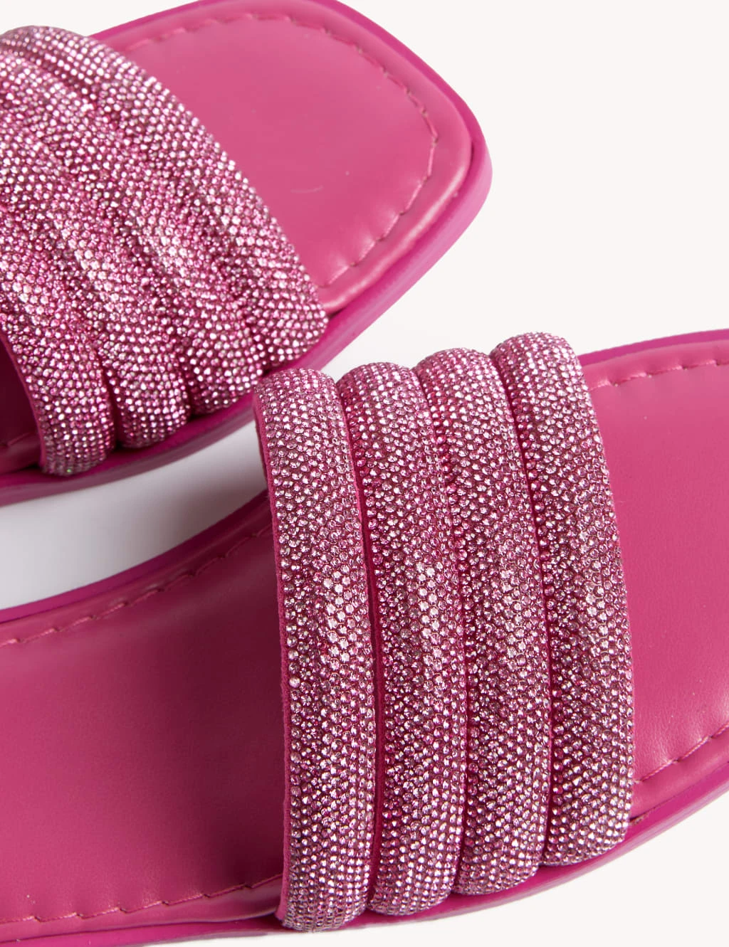Slip on these sparkly mules to instantly elevate off-duty outfits. They’re designed with four bands across the toe and a flat heel for comfortable wear. These shoes are vegan.