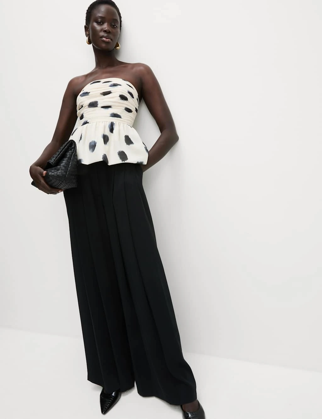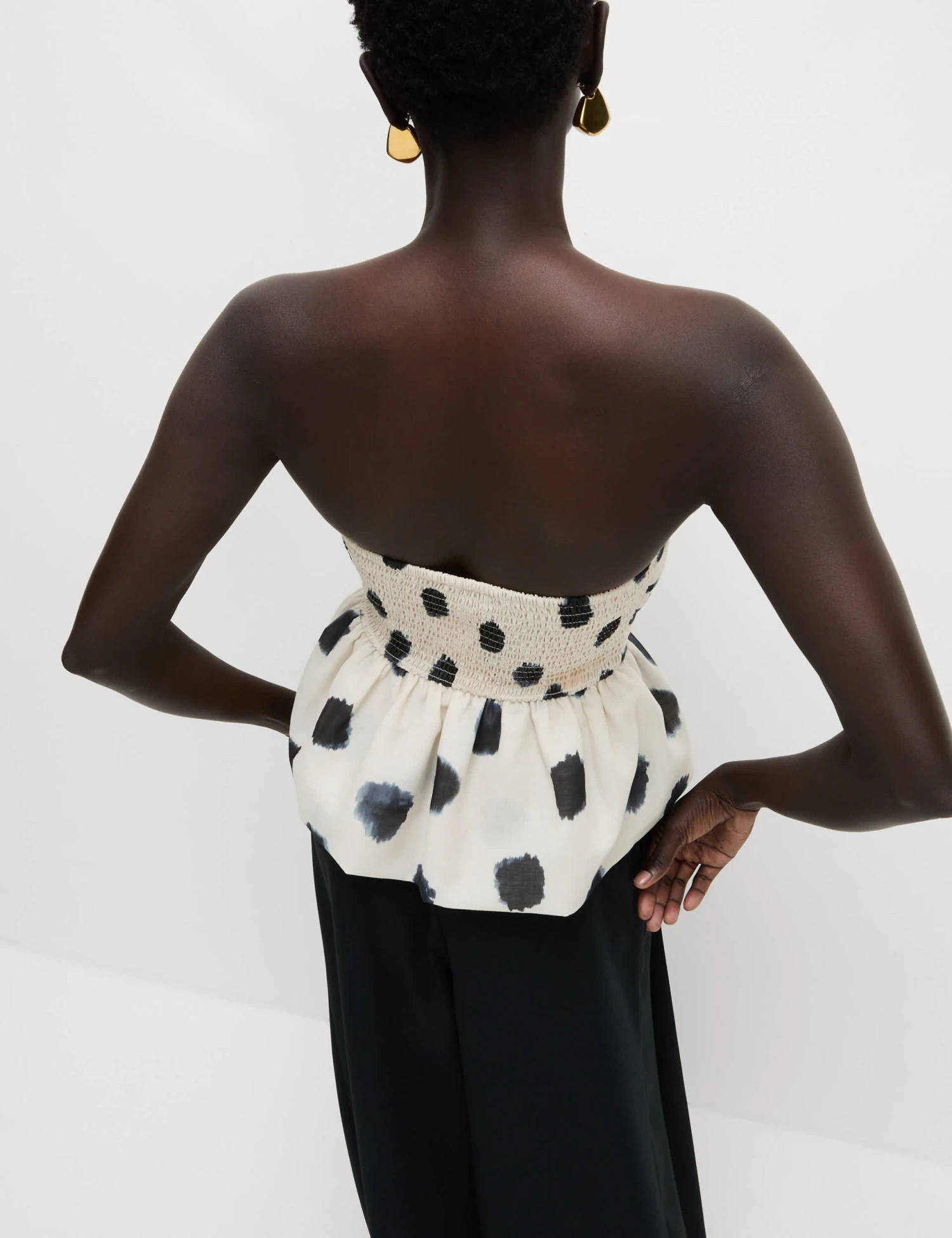 This bandeau top is a striking choice for warm-weather occasions. The sleeveless design is made to a regular fit, with a peplum hem and ruched detailing creating a modern feminine shape. Shirring at the back makes it comfy as well as flattering, while the painterly spot print adds extra sophistication. M&S Collection: easy-to-wear wardrobe staples that combine classic and contemporary styles.