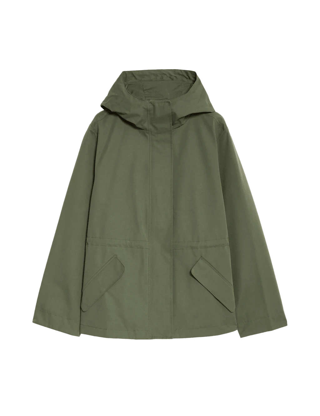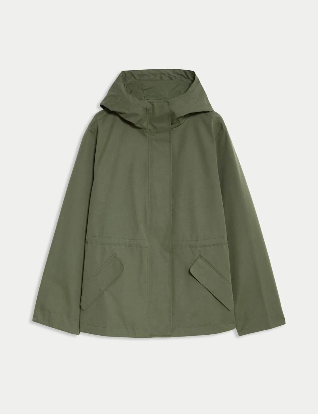 Featuring our water-repellent Stormwear™ technology, this hooded parka-style rain jacket will keep you dry in wet weather. It’s designed in a regular fit, with a drawstring waist for a flattering shape. Pocket detailing and a high collar make for practical additions. A concealed placket with poppers and zip fastening complete the design. M&S Collection: easy-to-wear wardrobe staples that combine classic and contemporary styles.