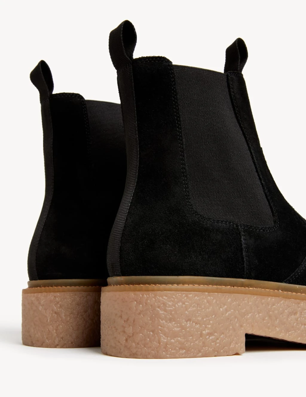Slip on these soft suede Chelsea boots to give any outfit a stylish touch. Classic ankle-high design with a modern chunky sole which features a crepe effect on the outside. Insolia Flex® technology ensures your foot is correctly placed inside the shoe for all-day comfort. Antibacterial padding for a fresh feel. Water-repellent finish helps stops stains from forming and makes them easier to remove.