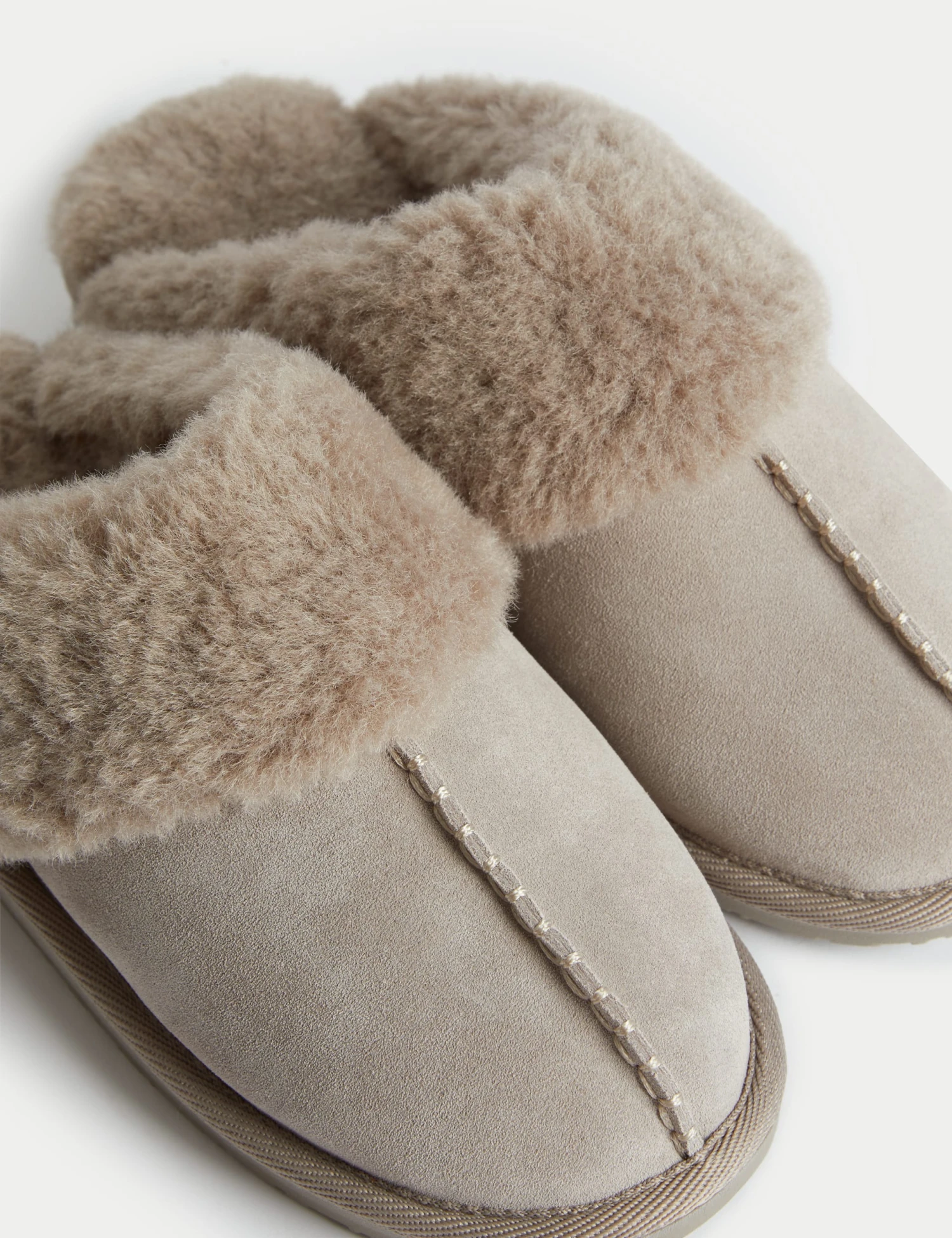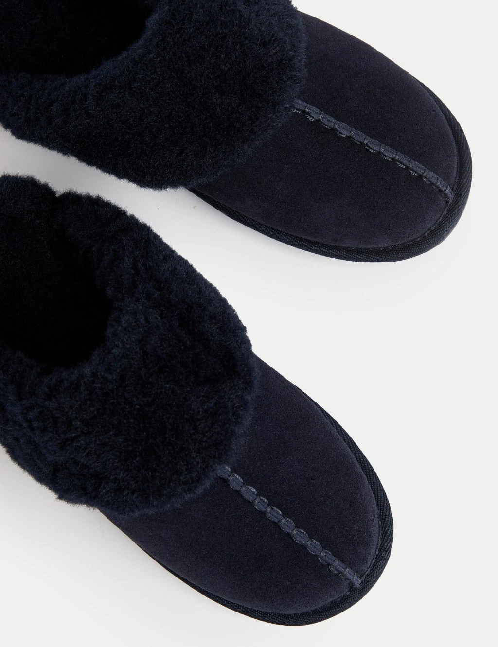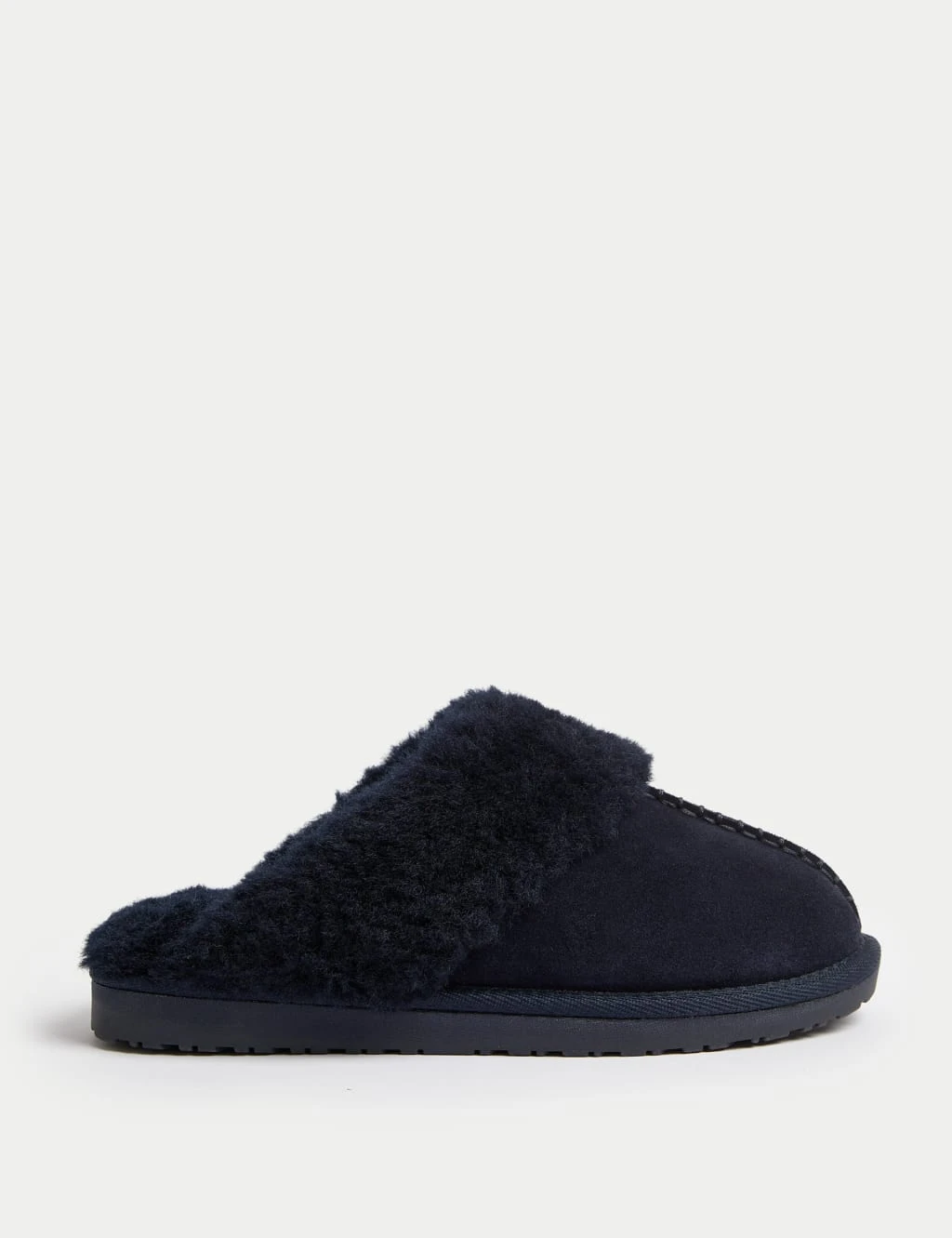 Keep your feet toasty on chilly days and evenings with these mule slippers featuring a cosy faux fur cuff and lining. They’re made with a stain-resistant suede upper, and a cleated sole for good grip. Antibacterial foam padding helps to minimise odour for a fresh feel. M&S Collection: easy-to-wear wardrobe staples that combine classic and contemporary styles.