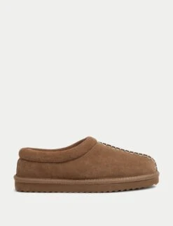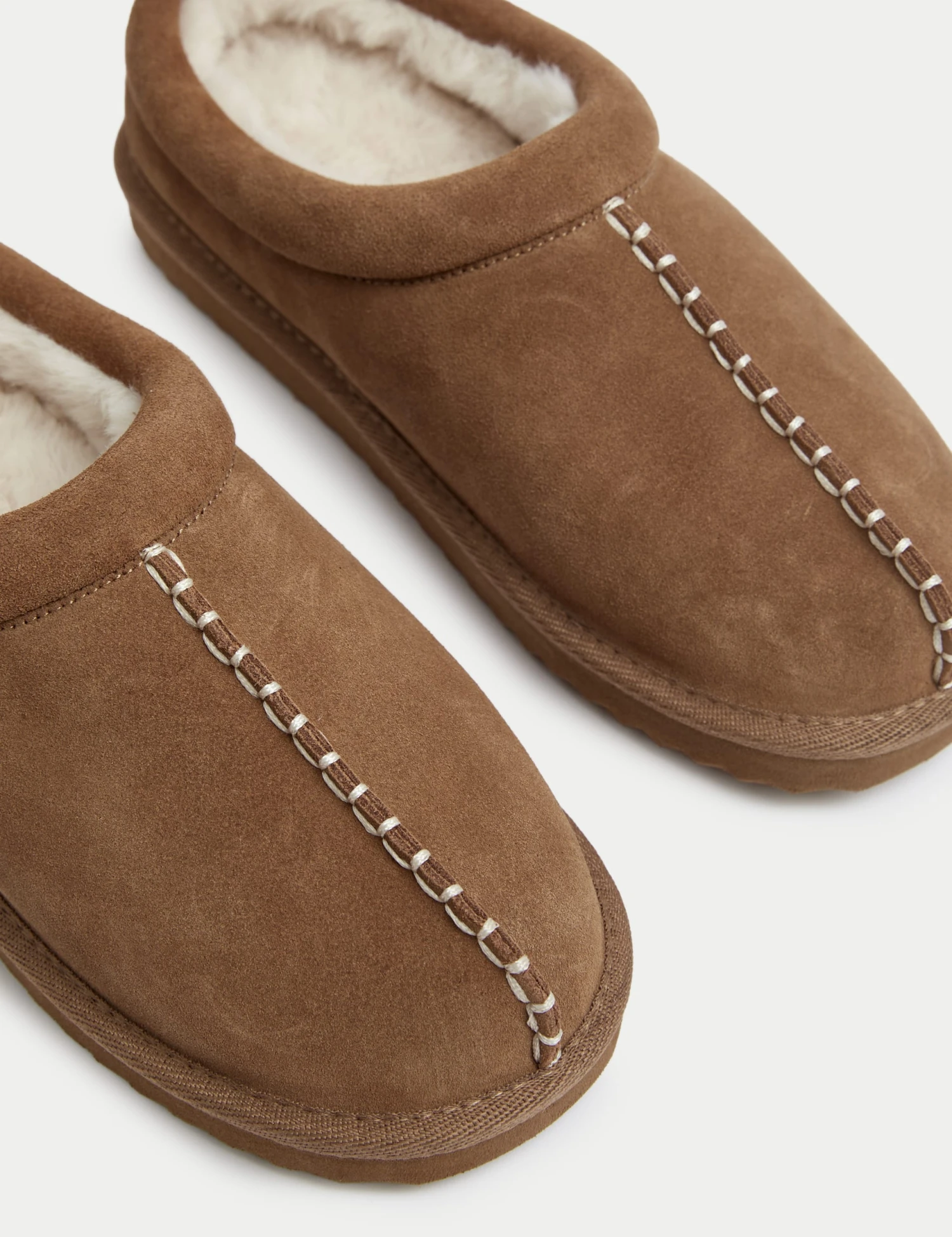 These mule slippers in their clog shape will keep your feet cosy and warm. Comfy flat sole, with an easy slip-on style and a closed back to give a secure feel. The suede fabric creates a premium look, while the faux fur lining provides a soft feel. Trim detailing adds a stylish finishing touch. M&S Collection: easy-to-wear wardrobe staples that combine classic and contemporary styles.