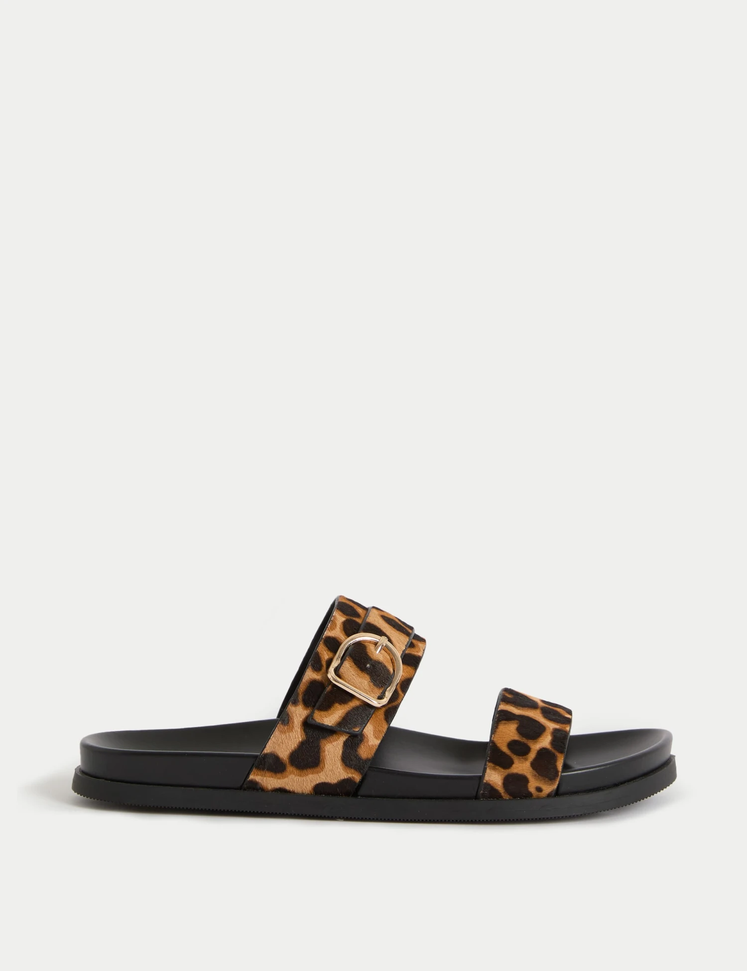 These slip-on sandals are a stylish addition to your warm-weather wardrobe. They’re designed with two straps and an adjustable buckle fastening for a secure fit. The footbeds are contoured for comfort, while the suede uppers are decorated with a bold leopard print design. M&S Collection: easy-to-wear wardrobe staples that combine classic and contemporary styles.