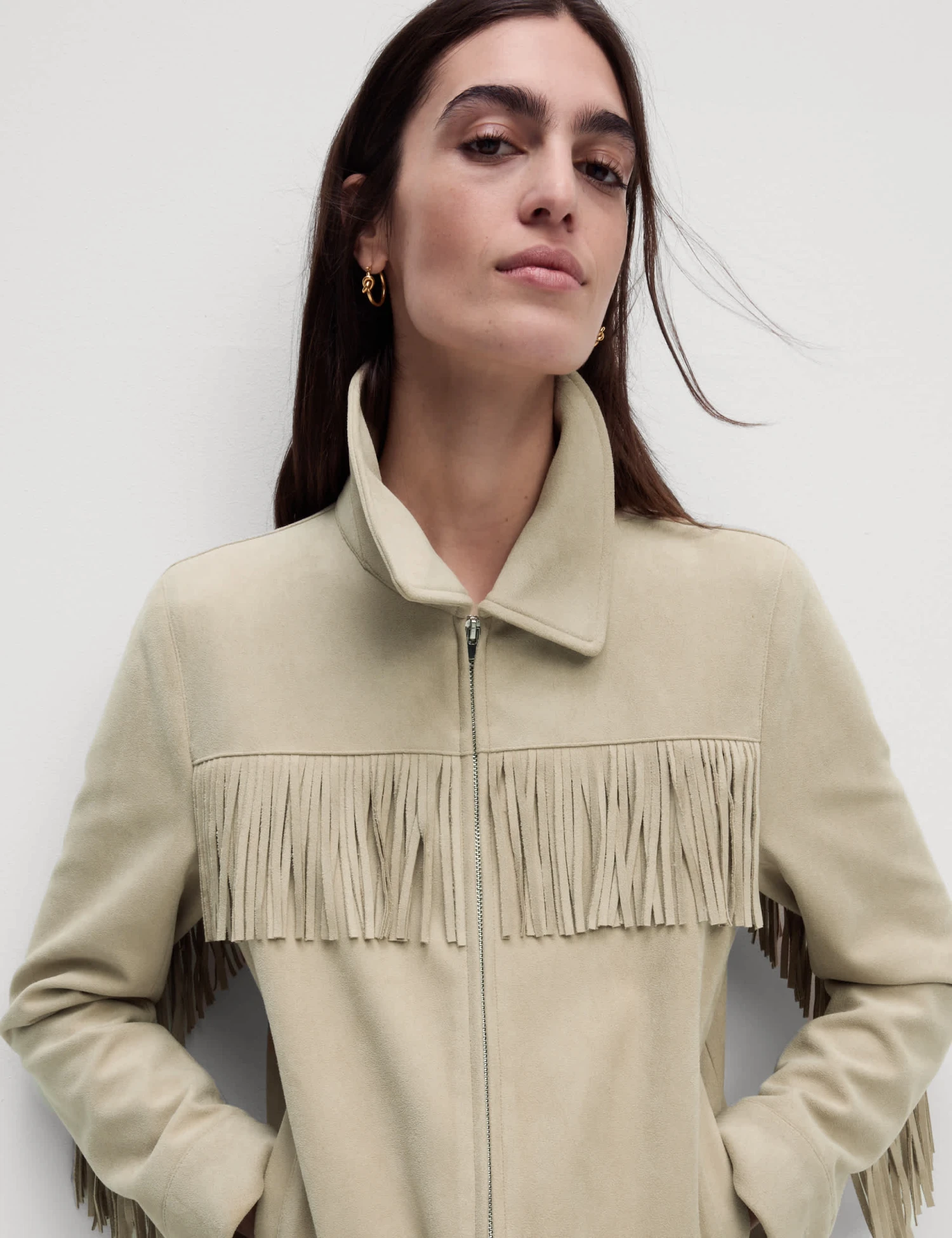 Elevate your smart-casual collection with this suedette jacket. It comes in a regular fit, featuring a fringed design on the front, back and sleeves to add a modern aesthetic. The collar leads to a zip-through fastening for a neat touch. It’s complete with two side pockets to give a convenient finish. M&S Collection: easy-to-wear wardrobe staples that combine classic and contemporary styles.