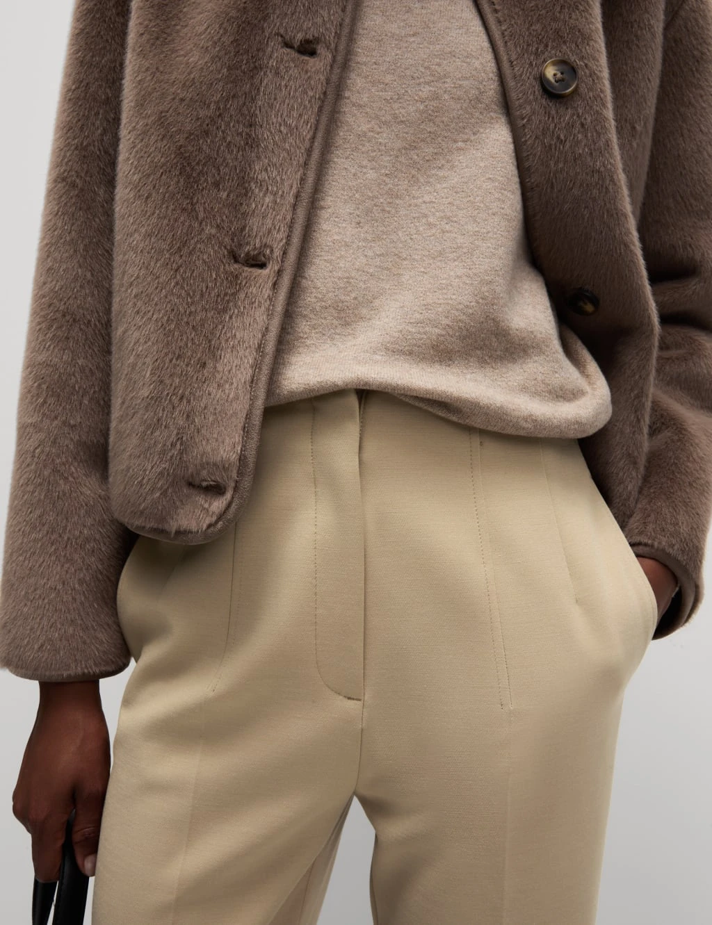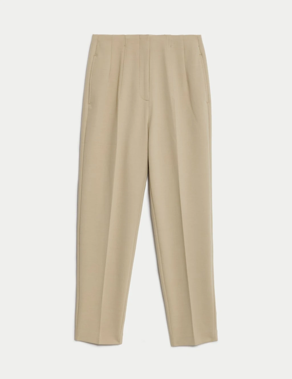 These trousers offer easy wear for smart and casual occasions alike. They have tapered legs with added stretch for comfort and an ankle-grazer length for a contemporary look. The elasticated high waist features double darts for a tailored effect and fastens securely with a hook bar and zip with a concealed button. Carry your essentials in the concealed side pockets.