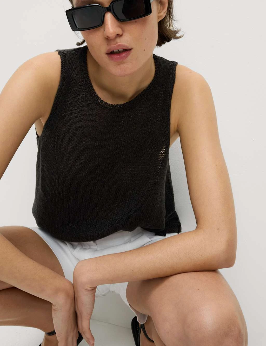 Update your basics collection with this light, airy knitted vest, crafted with cotton for a touch of softness. It’s designed in a regular fit, with an effortless crew neckline and a slouchy silhouette for a laid-back look. M&S Collection: easy-to-wear wardrobe staples that combine classic and contemporary styles.