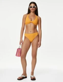 Turn to these textured bikini bottoms for effortless poolside style. They’re designed in a flattering high-leg shape, with added stretch for comfort. Thanks to the chlorine-resistant fabric, your swimwear will stay looking and feeling like new for longer. Sun Smart UPF50+ helps to protect against harmful UV rays. M&S Collection: versatile styles in modern shapes with unique and playful details.