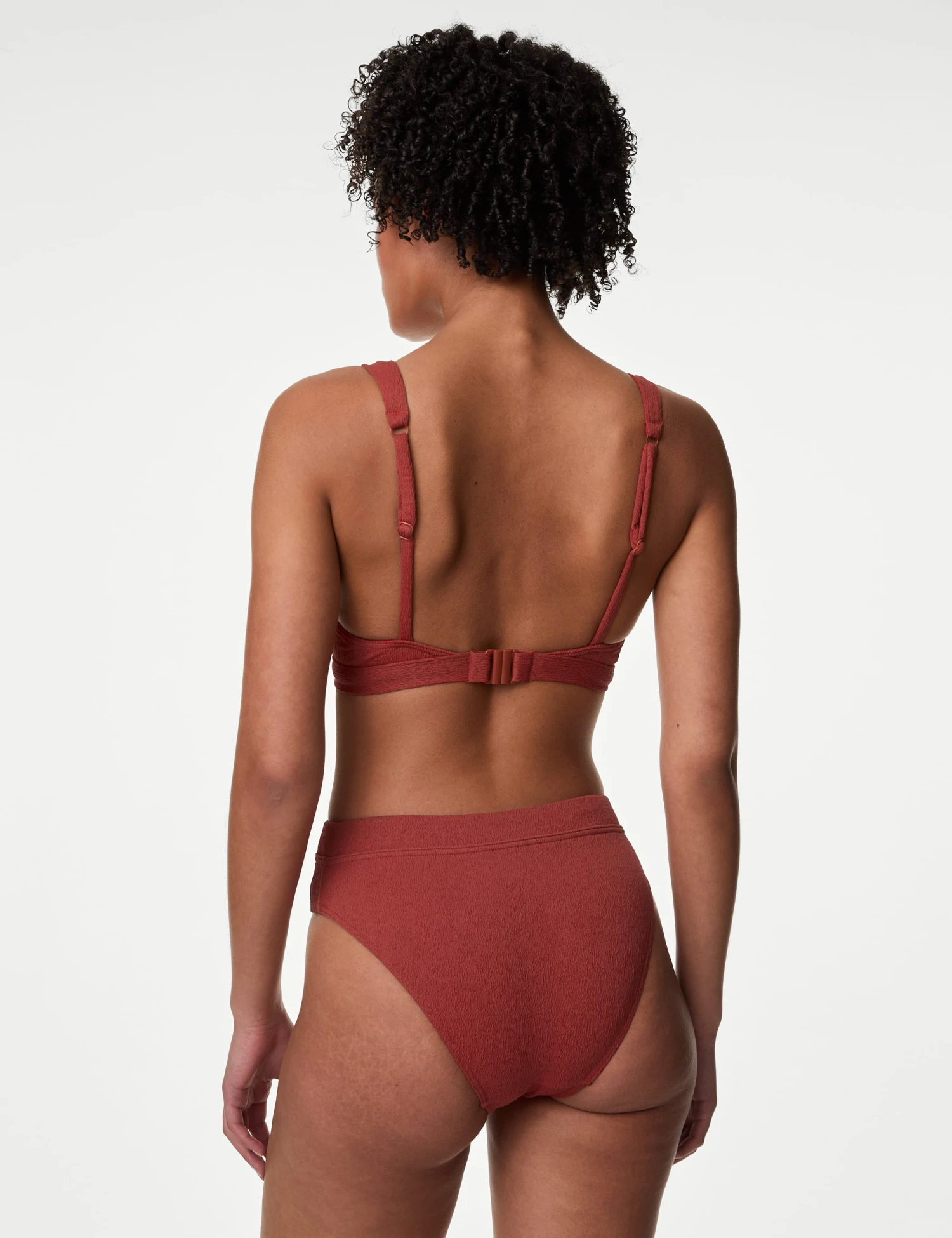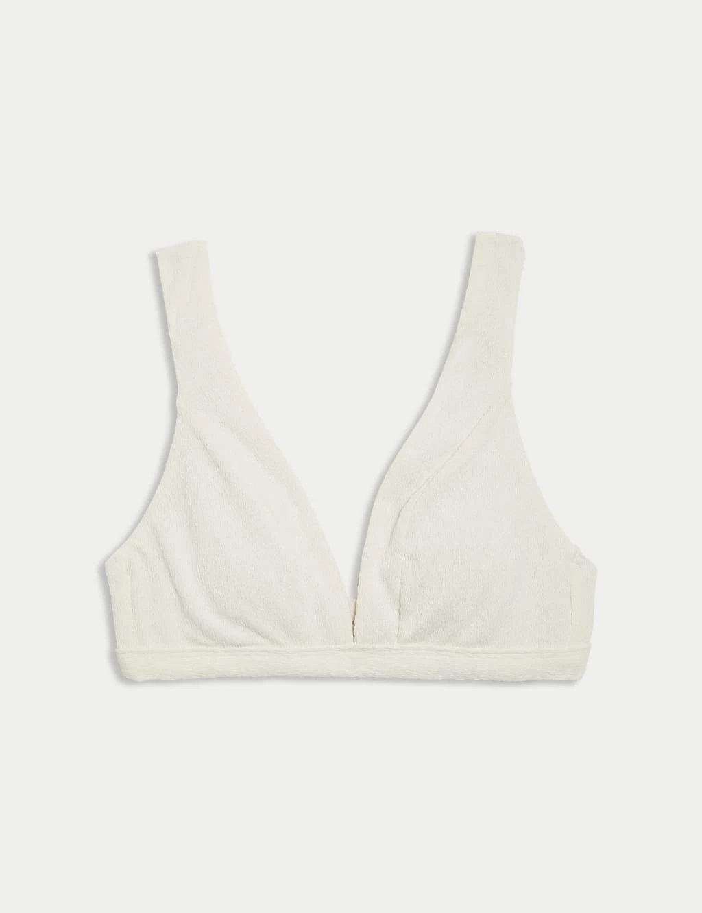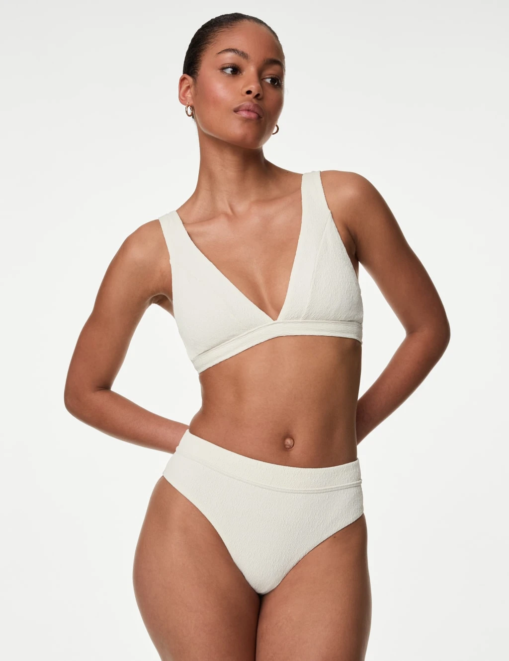 This plunge v-neck bikini top features a textured design for a stylish look. It’s cut in a comfortable regular fit and crafted from stretchy fabric, with adjustable straps and a secure clasp fastening. Removable padded cups offer a smooth shape. Sun Smart UPF50+ helps to protect against harmful UV rays. M&S Collection: versatile styles in modern shapes with unique and playful details.