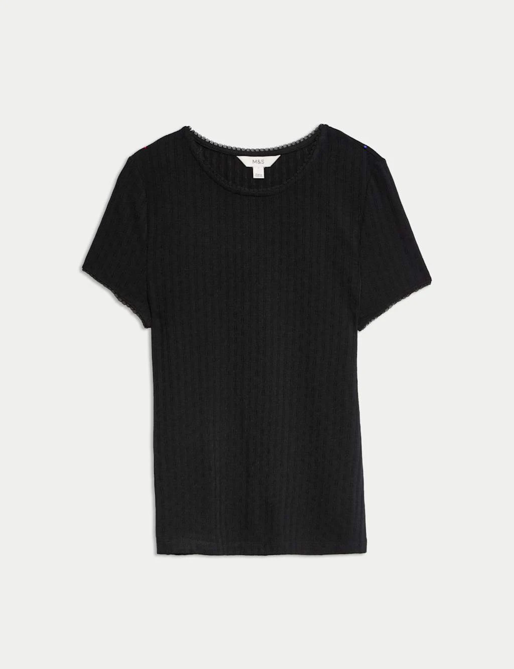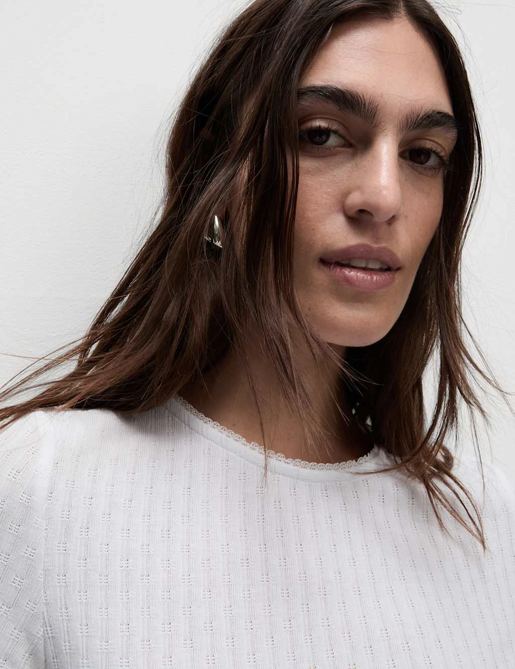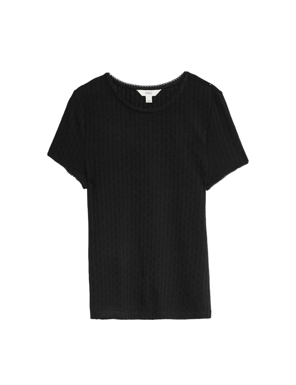 Stay snug in style with this textured pointelle t-shirt, crafted from cosy thermal fabric for chilly days. The regular fit and added stretch ensure easy comfort all day long. With its short sleeves and classic crew neck, it’s perfect for effortless layering.