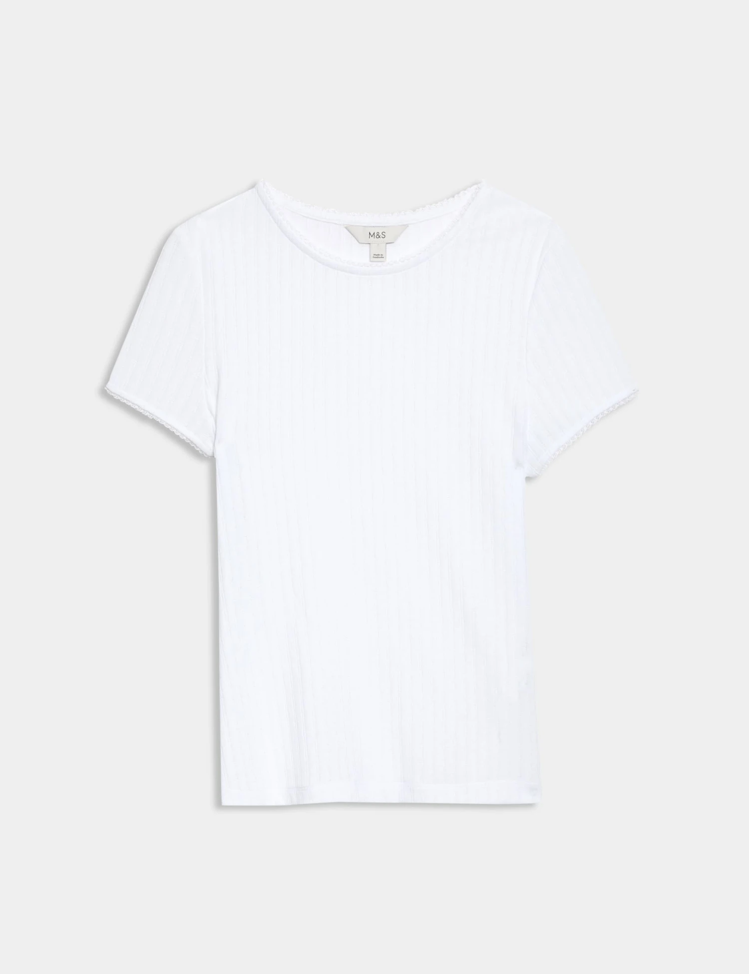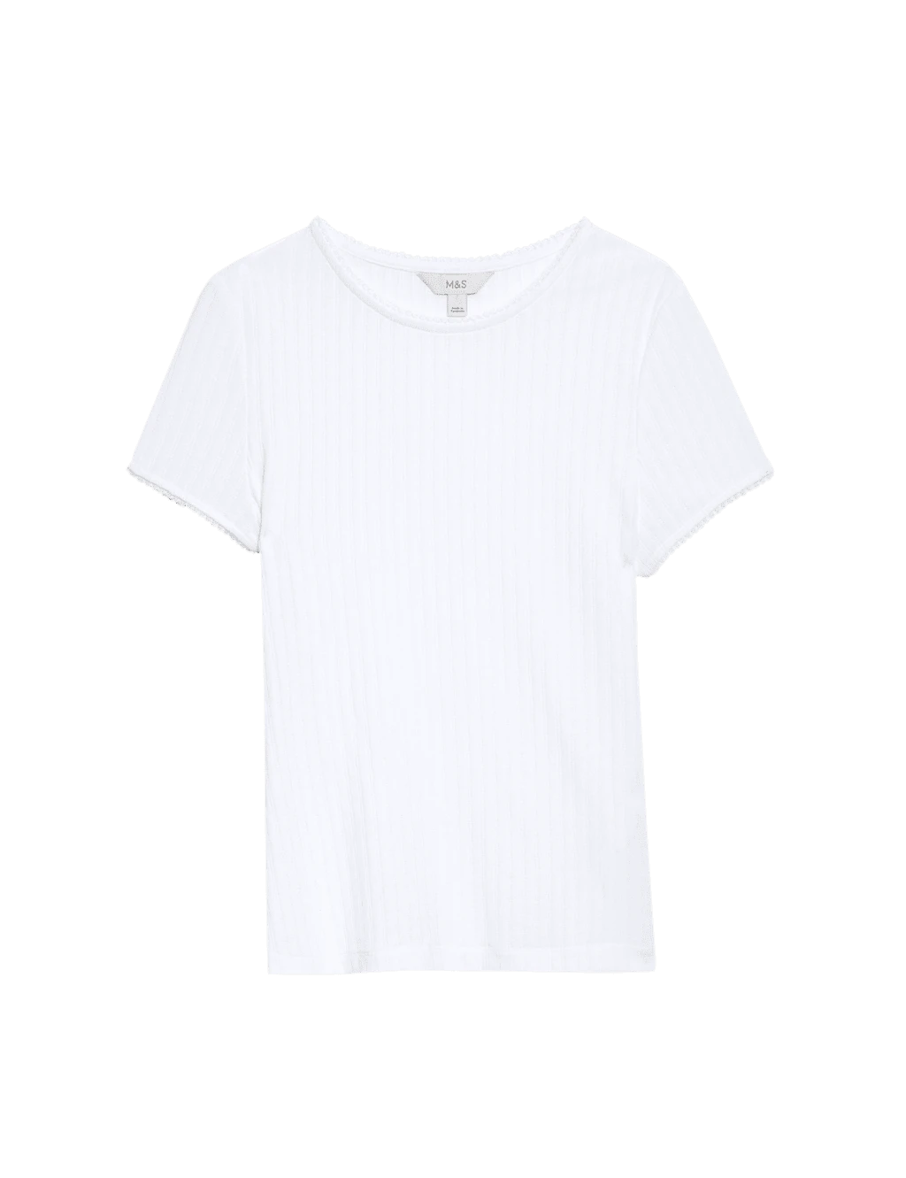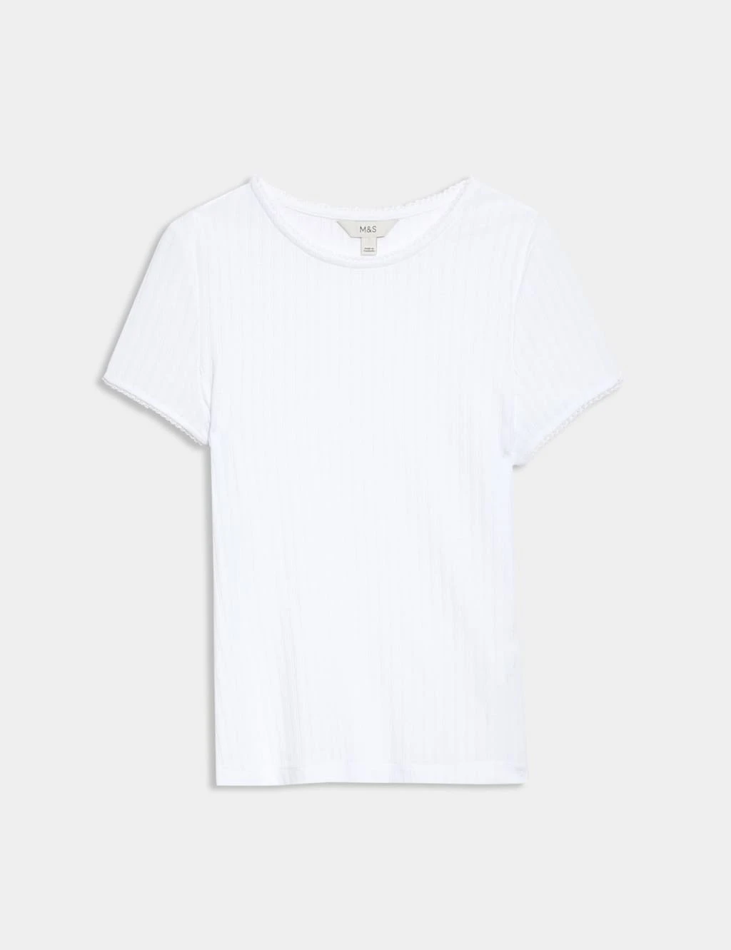 Stay snug in style with this textured pointelle t-shirt, crafted from cosy thermal fabric for chilly days. The regular fit and added stretch ensure easy comfort all day long. With its short sleeves and classic crew neck, it’s perfect for effortless layering.