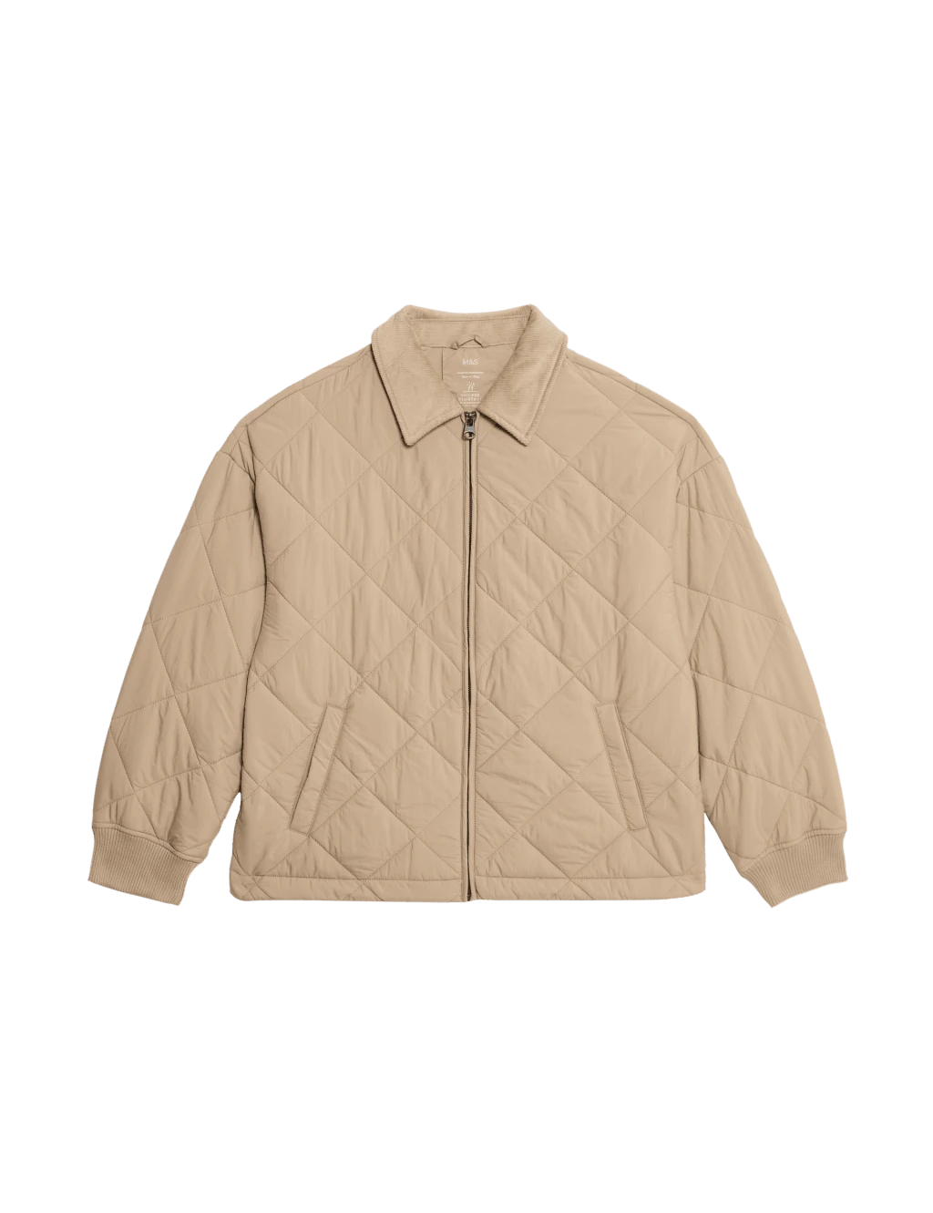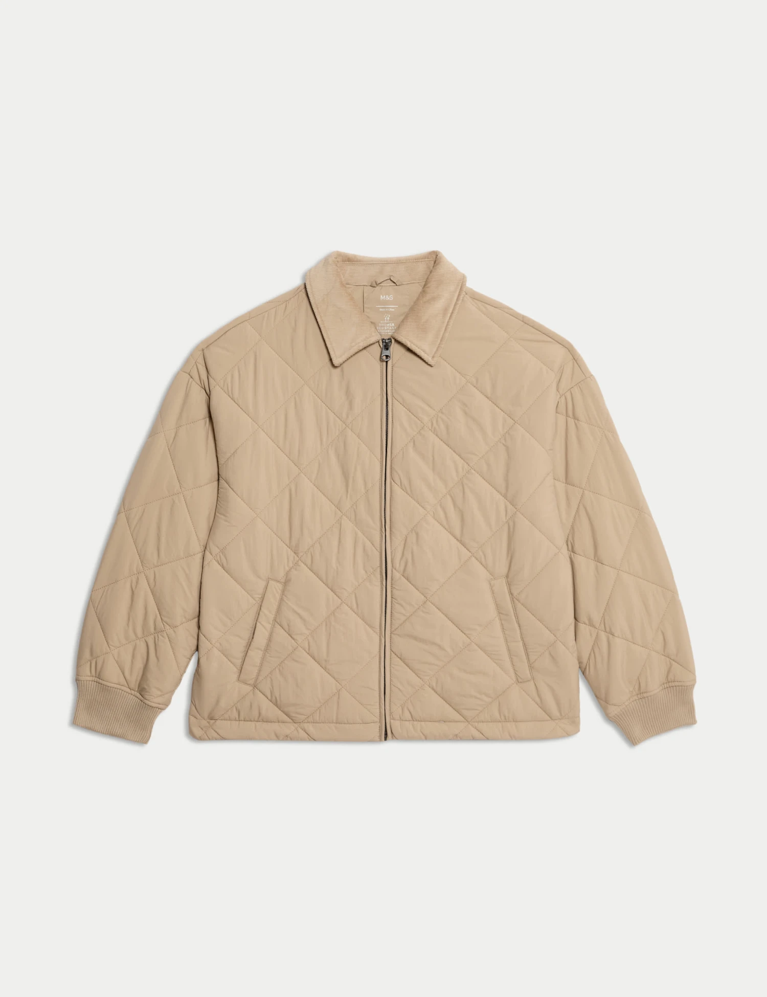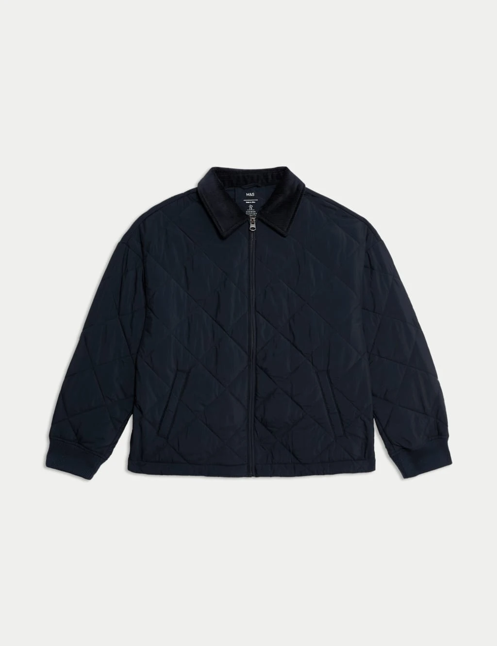 This lightweight diamond-quilted jacket is a versatile addition to your cold-weather wardrobe. It’s designed in a regular fit, with a cord collar and ribbed cuffs for comfort. A shower-resistant Stormwear™ finish and Thermowarmth™ insulation keep you warm and dry. The piece is complete with a zip fastening and two side pockets. M&S Collection: easy-to-wear wardrobe staples that combine classic and contemporary styles.