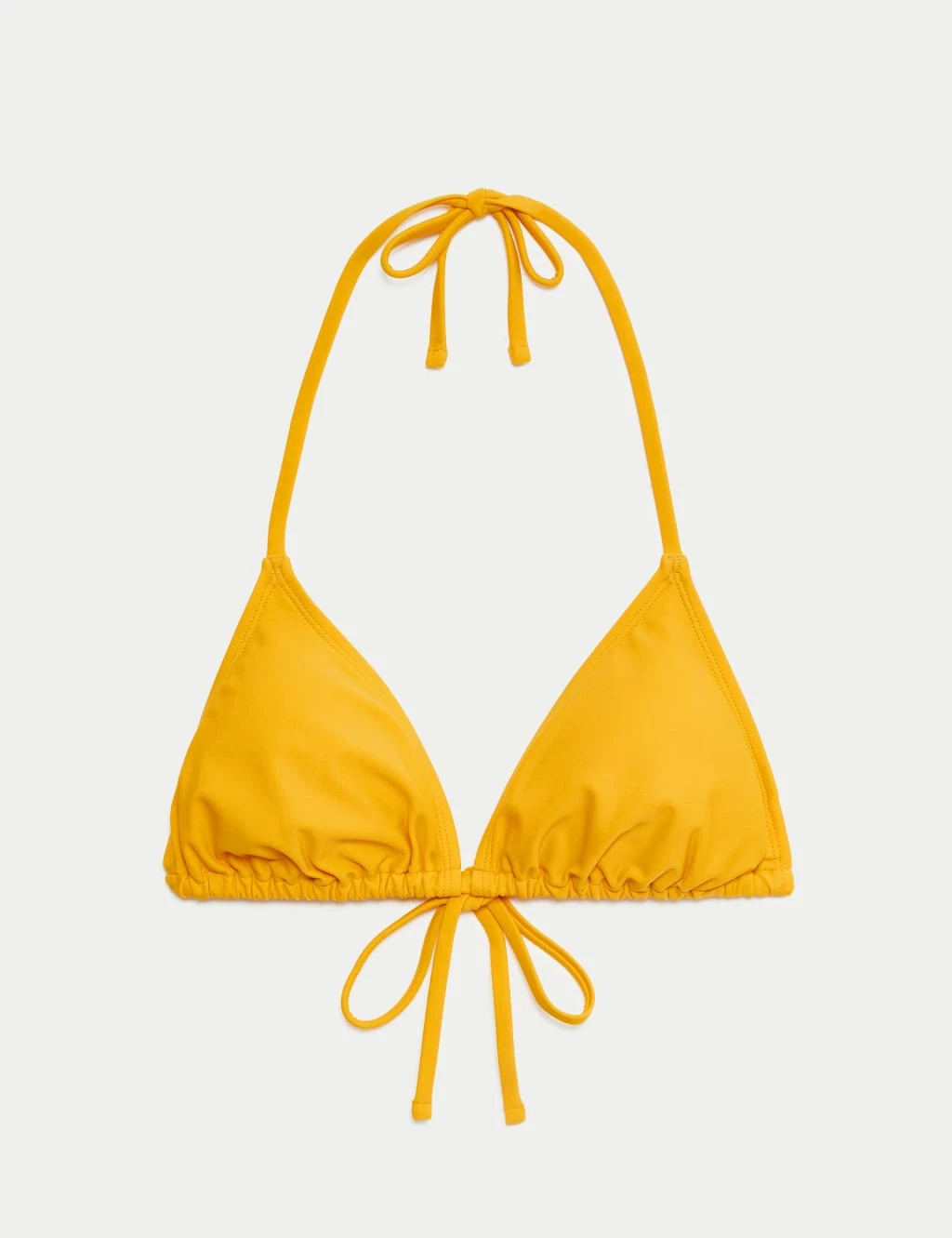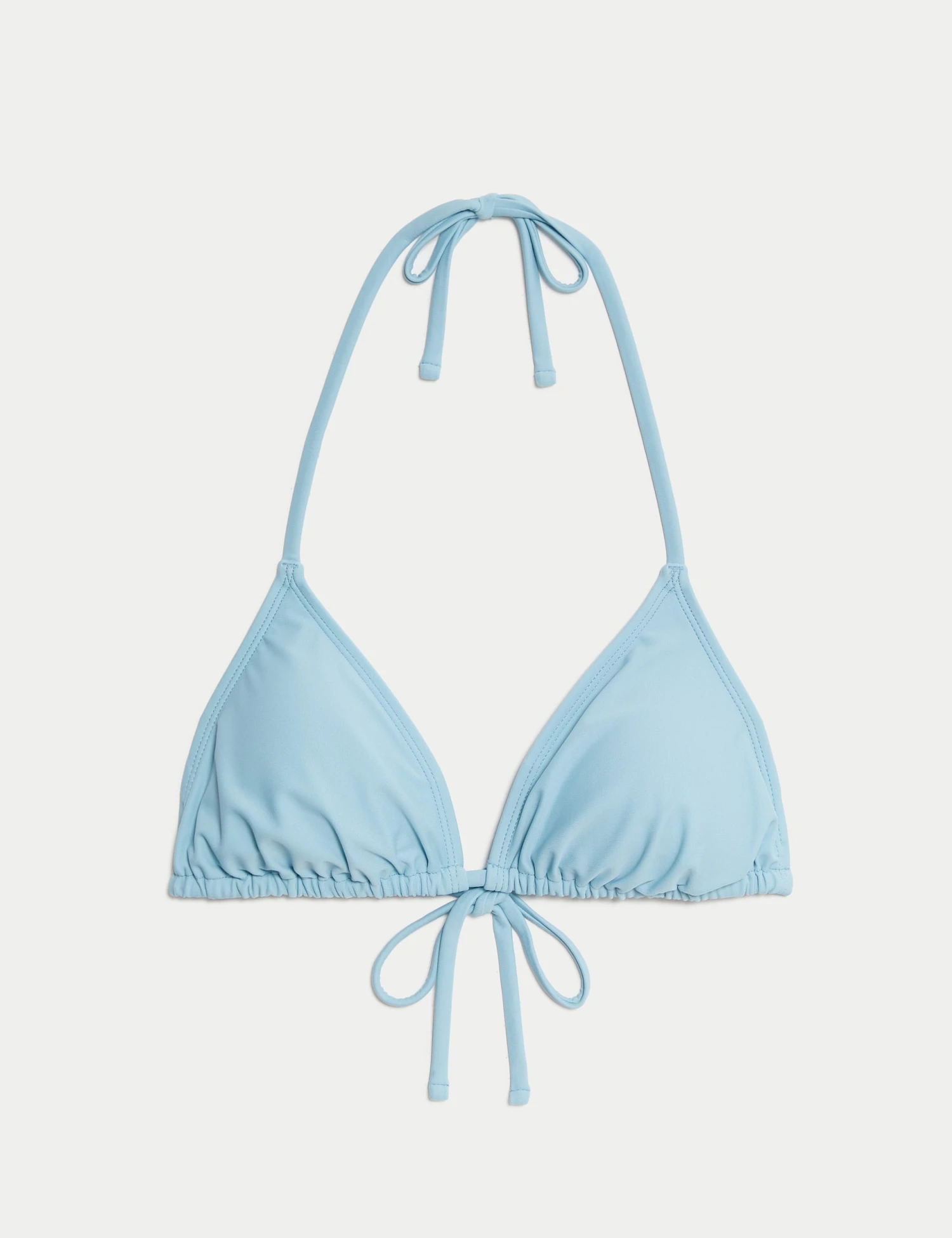 This simple yet stylish bikini top is a versatile addition to your swimwear collection. It’s designed in a flattering triangle shape, with a halterneck and removable padding for an adjustable fit. Added stretch ensures comfort, while our StayNew™ chlorine-resistant fabric keeps it looking newer for longer. M&S Collection: versatile styles in modern shapes with unique and playful details.