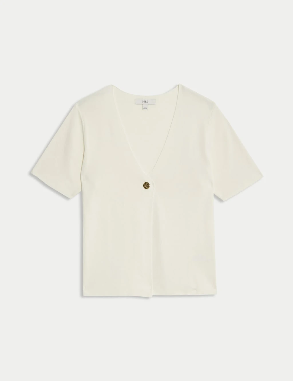 This v-neck cardigan is an easy piece to layer into your wardrobe. It’s designed in a relaxed fit with short sleeves and a button-through front. Ribbed trims add a neat finish. M&S Collection: easy-to-wear wardrobe staples that combine classic and contemporary styles.