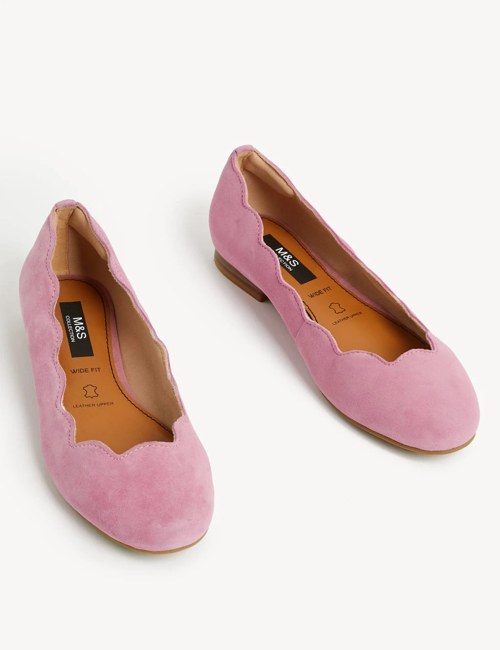 Our suede ballet pumps feature a striking scalloped edge, adding pretty detail to these classic shoes. Designed in a comfortable wide fit, with Insolia Flex® technology to make sure your feet are perfectly positioned. Antibacterial padding helps keeps your shoes fresh, while the water-repellent finish helps the suede stay newer for longer.