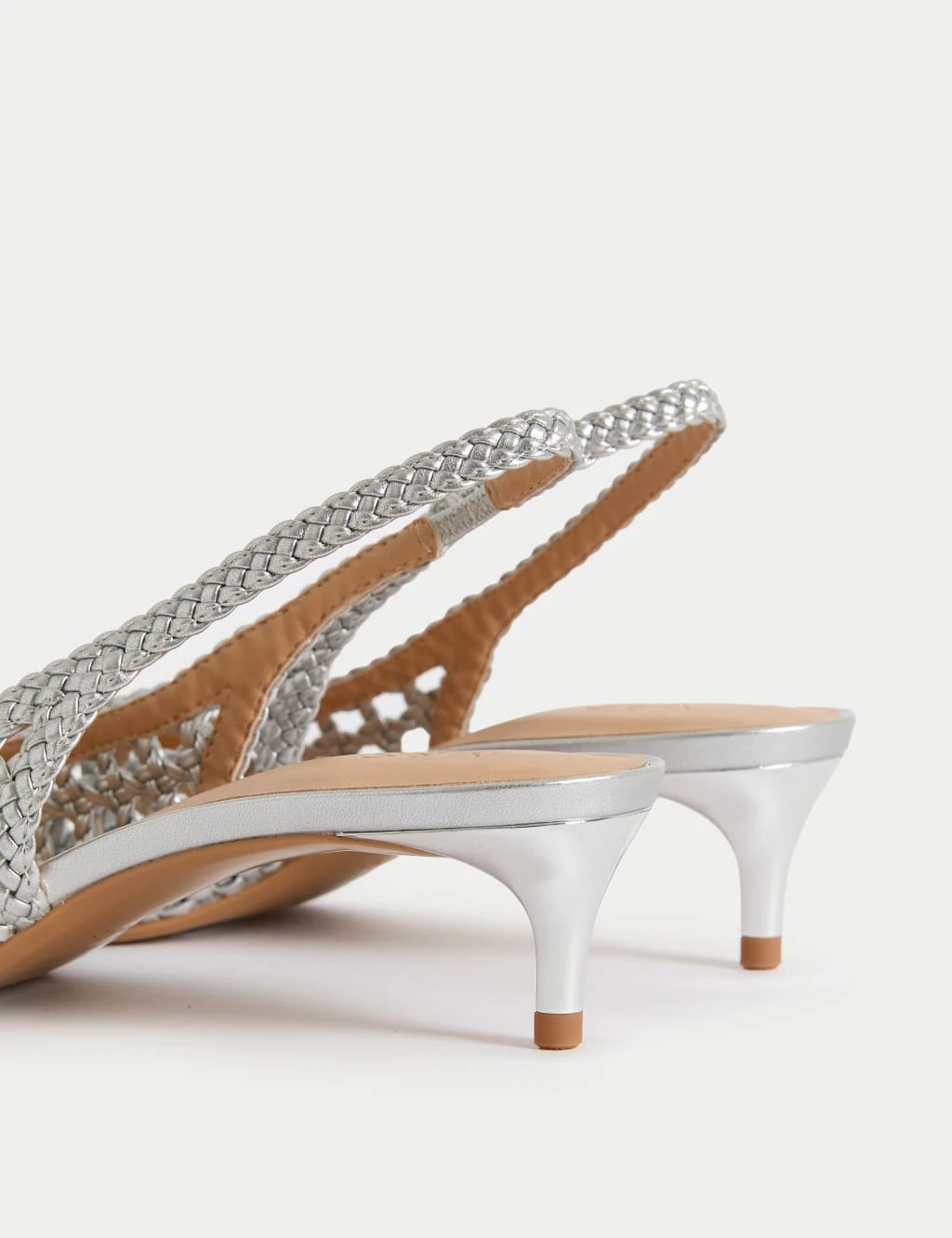Step up your style game with these handmade slingbacks, featuring an eye-catching woven texture that instantly elevates any look. The mid-height kitten heel and pointed toe add a chic, refined edge. Insolia® technology redistributes your weight away from the balls of your feet, making the shoes more comfortable to wear. M&S Collection: easy-to-wear wardrobe staples that combine classic and contemporary styles.